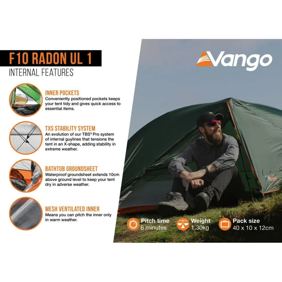 Wer solo oder zu zweit unterwegs ist, der ist mit dem 2-Personen-Zelt F10 Radon UL 2 von Vango gut ausgestattet!