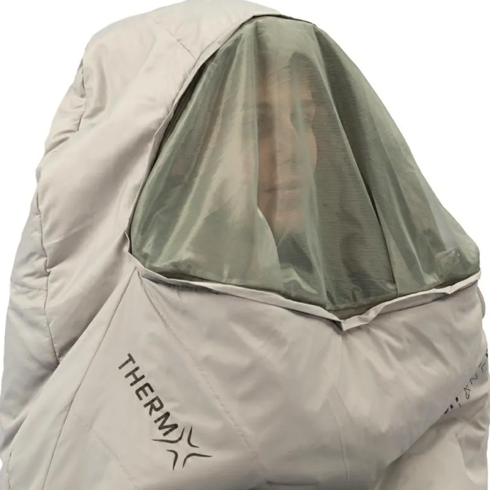 Dank der ergonomischen Form und der speziellen Arrow Foot 2.0-Konstruktion genießt Du maximale Bewegungsfreiheit und Komfort. Der Mantis Planet ist mit einem Zwei-Wege-Reißverschluss ausgestattet, der für zusätzliche Belüftung sorgt, und verfügt über eine praktische Innentasche für kleine Gegenstände. Moskitonetze an Kopf und Fuß schützen Dich vor Insekten.