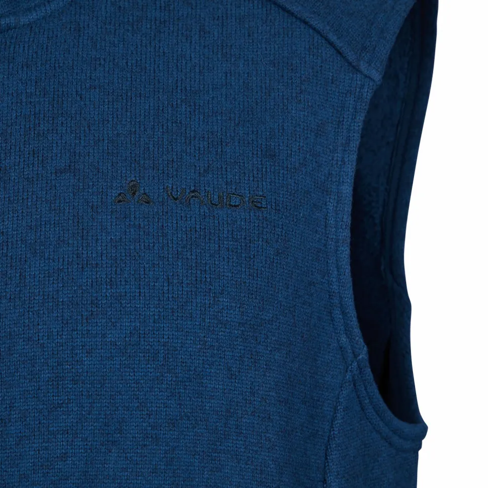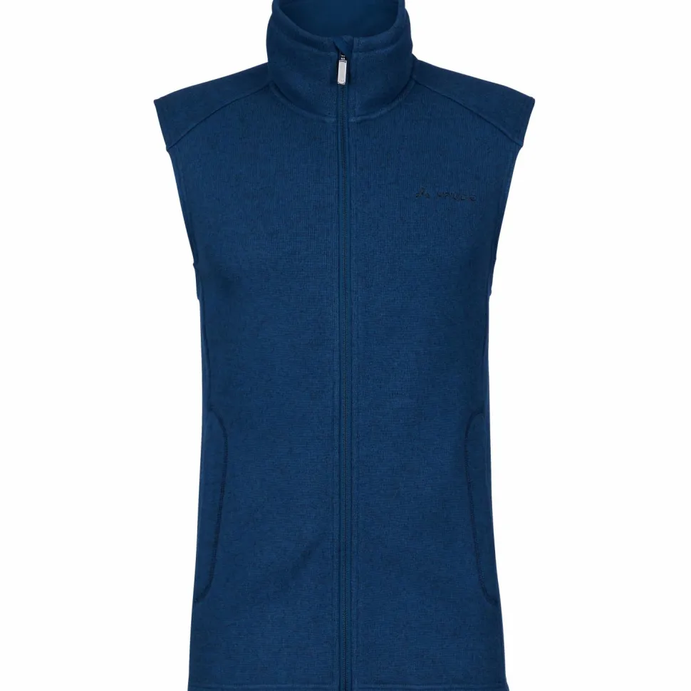 Die Aland Vest von Vaude sorgt mit ihrem weichen Fleece für Wärme und Komfort. Die schicke Strickoptik passt beim Wandern ebenso wie im Alltag. Mit den Kontrastnähten und den beiden integrierten Reißverschlusstaschen wird das gelungene Design perfekt ergänzt. Ein hoher Stehkragen schützt zudem den empfindlichen Halsbereich vor Wind und Kälte.