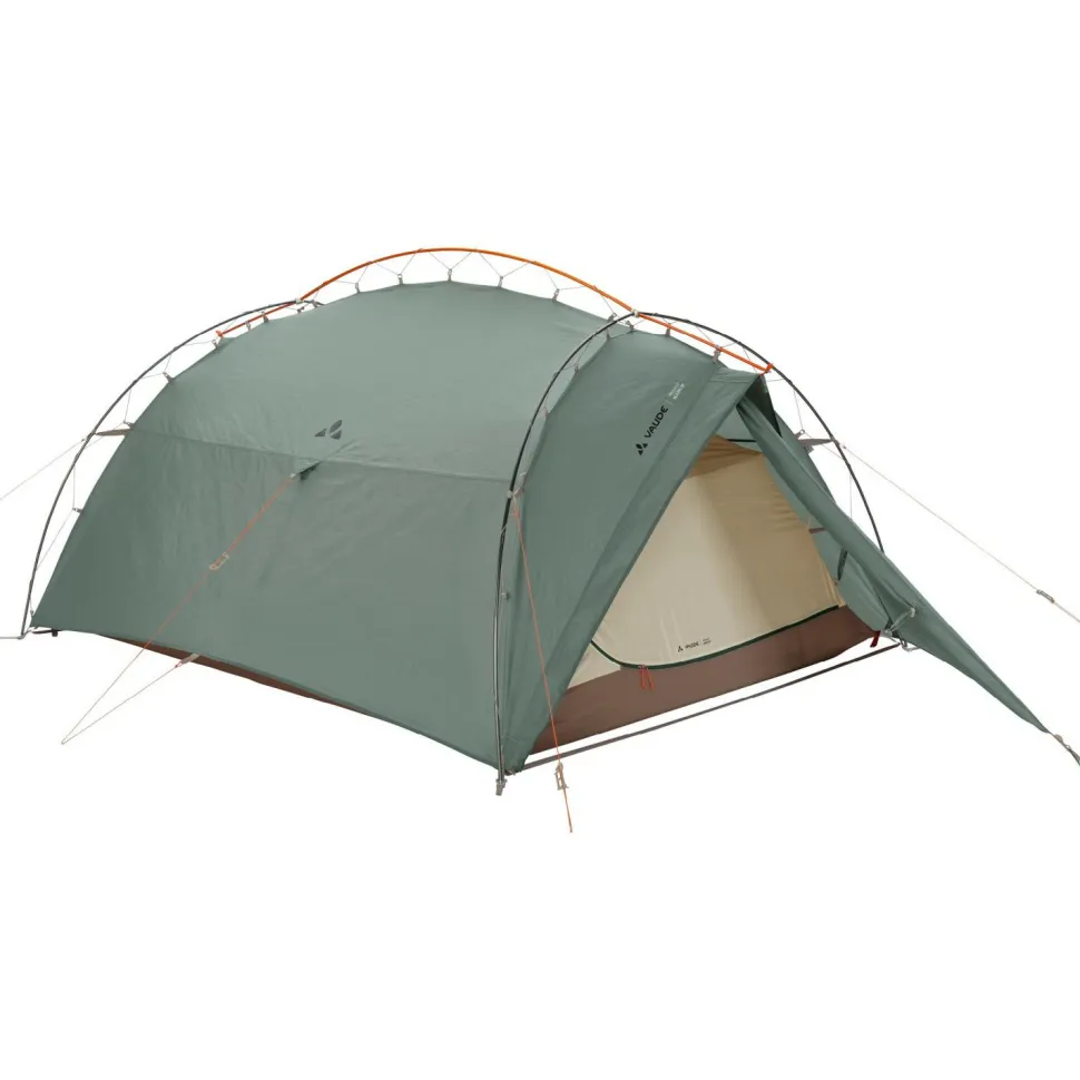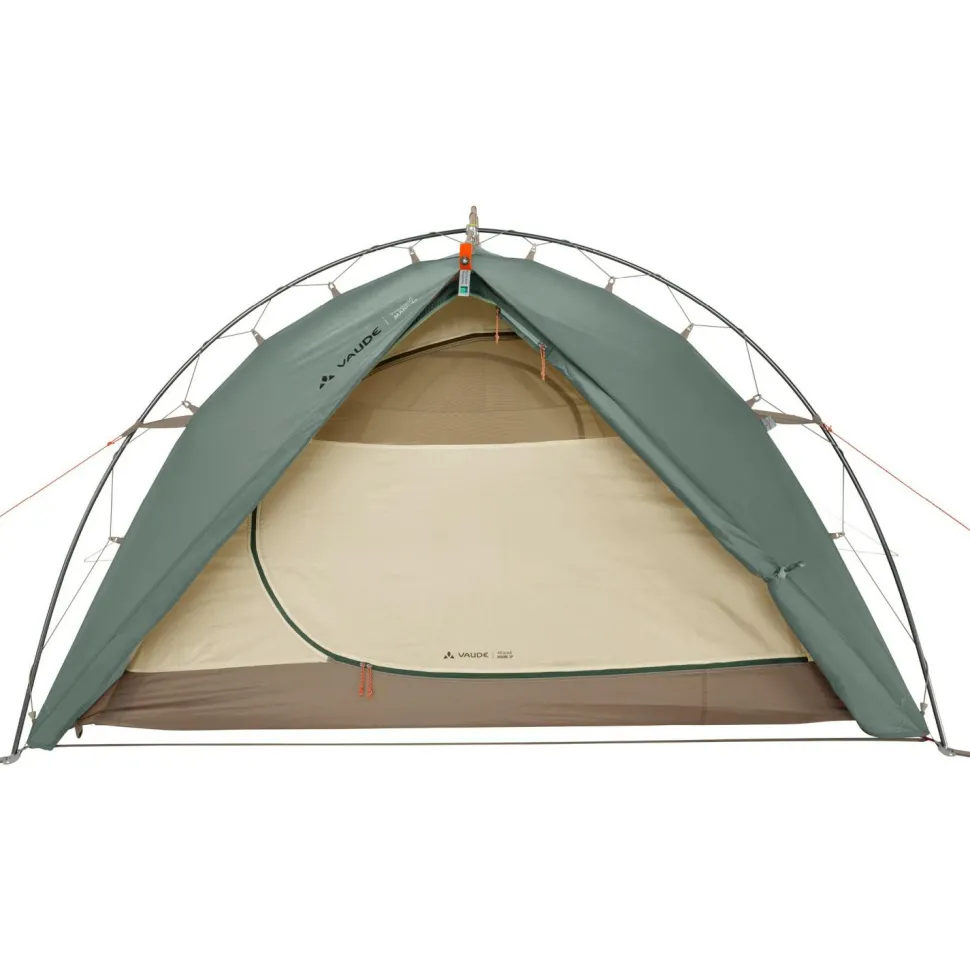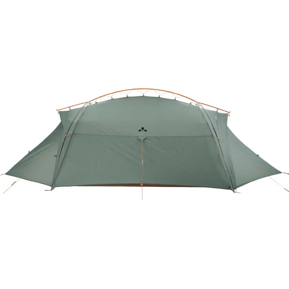 Unschlagbar schnell aufgebaut und dabei viel Platz: das Allround Mark 3P von Vaude! Sein wetterfestes und verlässlich robustes Material an Außenzelt und Boden ist komplett aus recycelten PET-Flaschen hergestellt. Hinzu kommt die spezielle Konstruktion dieses 3 Personen Trekkingzelts, die mit ihrem abgewinkelten Außengestänge ideal für schnelle und variable Aktivitäten rund um den Berg geeignet ist. Sie lässt das Zelt selbst stehen und bietet mit ihrer elastischen Aufhängung des Außenzeltes dem Wind kaum Angriffsfläche. Dass du bei Nässe nicht nachspannen musst, ist ein weiterer Vorteil dieser sehr windstabilen Konstruktion.