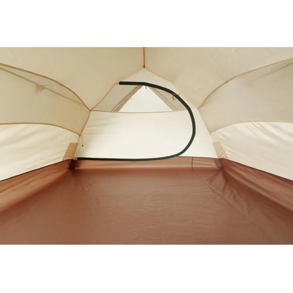 Der Aufbau gelingt auch dank des gleichzeitigen Aufstellens von Innen- und Außenzelt sehr schnell. Dass die Aufwicklung der Abspannleinen zugleich auch die Klemmvorrichtung ist, macht den Aufbau ebenfalls schneller und angenehmer. Außerdem sorgt das bereits eingehängte Innenzelt dafür, dass der Innenraum auch dann trocken bleibt, wenn das Mark 3P im Regen aufgebaut werden muss.Selbstverständlich lässt sich die Innenzeltkabine bei warmem und trockenem Wetter auch herausnehmen, wenn man noch mehr Wohn- und Stauraum schaffen möchte.