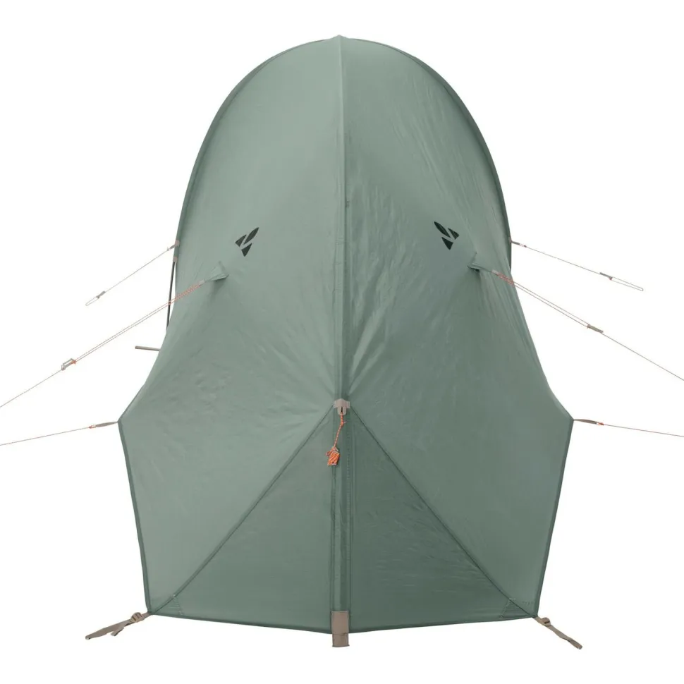 Die selbststehende Ridge Tunnel-Konstruktion des Taurus 1P kombiniert mit ihrem abgewinkelten Gestänge die Vorteile von Tunnel- und Firstzelt. Dazu gehören die hohe Stabilität bei relativ viel Stauraum, der First, der hoher Schnee- und Windlast standhält und die auch bei Regen sichergestellte Belüftung.
