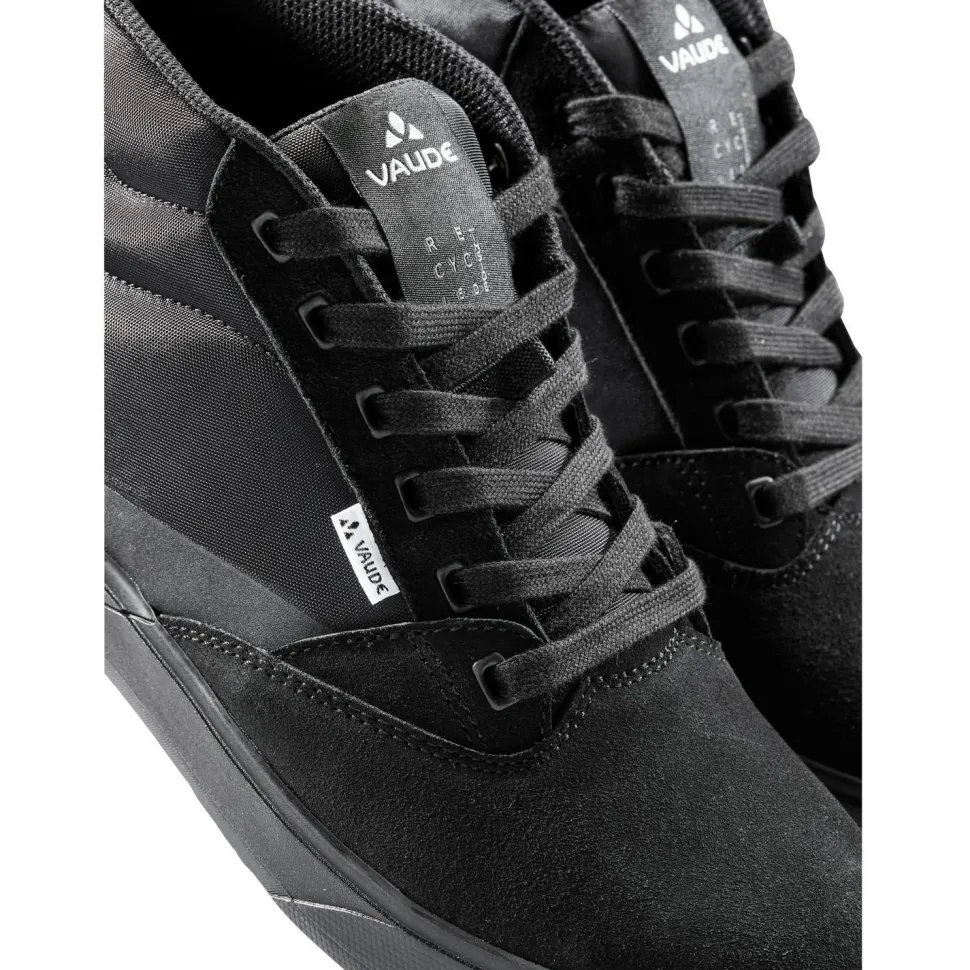 Der AM Moab Gravity Mid von Vaude ist ein stylischer Flatpedal-Schuh mit besonderem Bezug zum Dirtbiken. Aber, der Name sagt es, eigentlich ist er in allen Gravity-Disziplinen daheim! Er eignet sich also genauso für Downhiller, Enduro-Fahrer oder schlicht zackige Trail-Reiter, die lieber ohne Clickies unterwegs sind. Denn die Sohle ist im Pedal-Bereich speziell konturiert, um maximalen Halt auf dem Flatpedal bieten zu können, während der Zehen- und Fersenbereich für einen hervorragenden Grip beim Gehen im Gelände gestaltet ist. Der Oberschuh besteht aus einer hydrophoben Mischung aus Velours-Leder und PES-Canvas, und für Tragekomfort sorgen die anatomisch geformte, herausnehmbare Einlegesohle, sowie das dämpfende Fersenelement. Die Sohle besteht aus der langlebigen SUPtraction-Gummimischung, die dem Fuß ein gutes Gespür für das, was auf dem Pedal passiert, vermitteln soll.Das Wichtigste in Kürze: