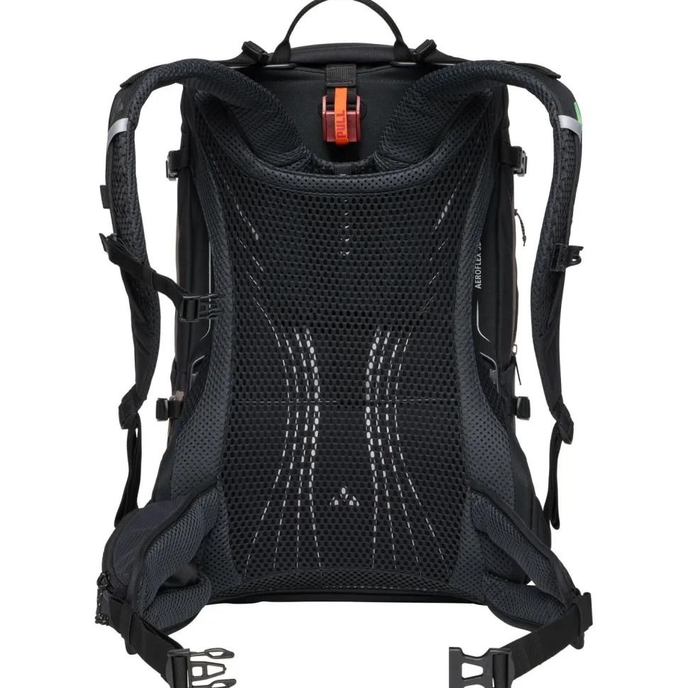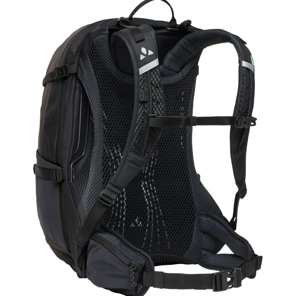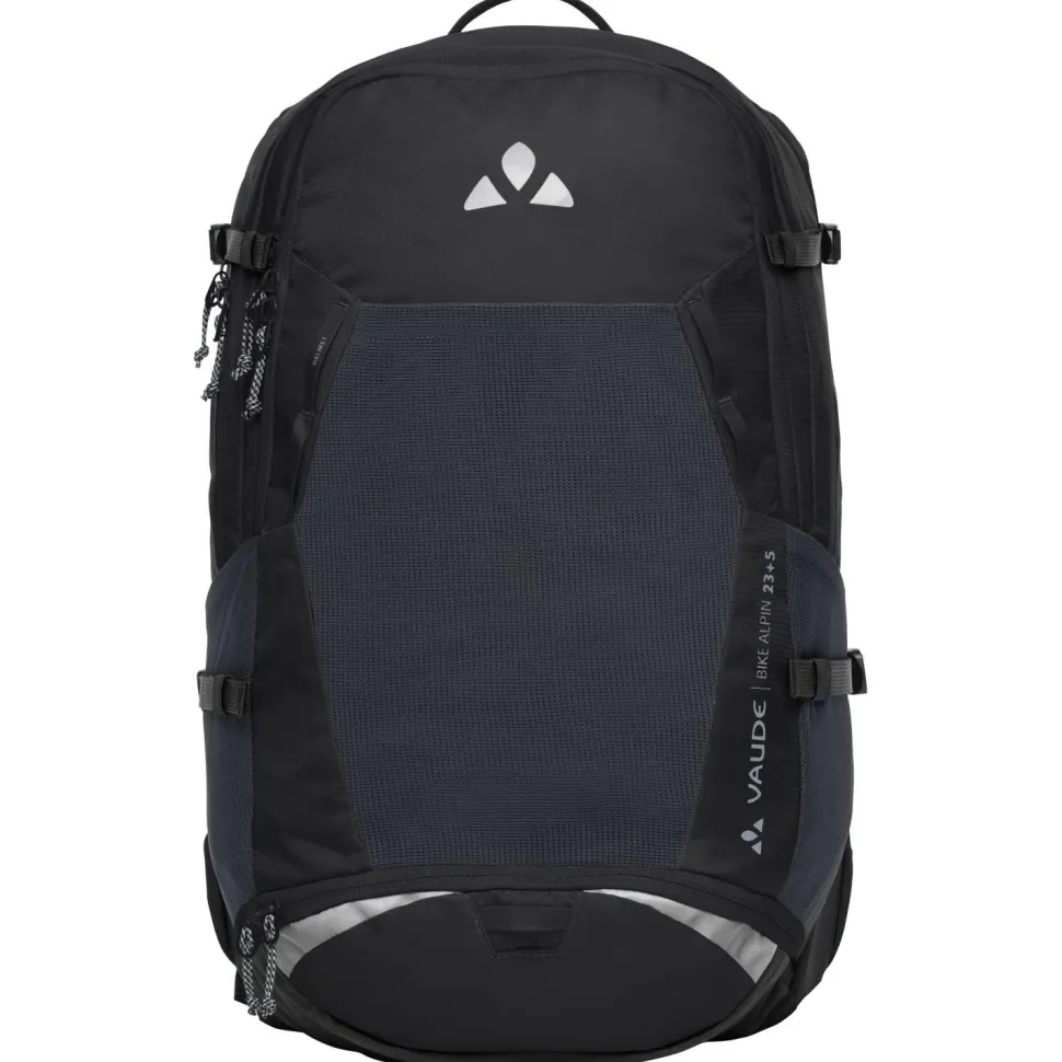 Der Bike Alpin 23+5 von Vaude ist ein kompakter Mountainbikerucksack für Tagestouren und alpine Bikeabenteuer. Sein Aeroflex 3D 2.0 Tragesystem ist in der Höhe stufenlos verstellbar und damit auch für längere Rücken geeignet. Die ErgoShape-Schultergurte verschaffen optimale Bewegungsfreiheit, während die gepolsterten Hüftgurte mit ihrem praktischen Reißverschluss-Täschchen für Entlastung sorgen. Hinzu kommt die permanente Rückenbelüftung von allen vier Seiten, die sowohl gegen Wärmestau als auch gegen Feuchtigkeitsbildung wirksam ist.