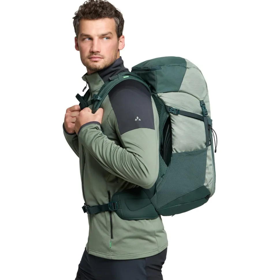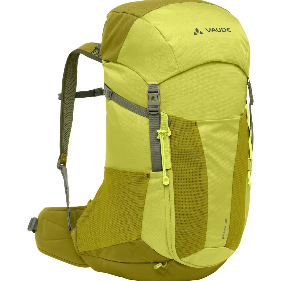 Der Brenta 30 von Vaude ist ein kompakter, sportlicher und top ausgestatteter Wanderrucksack mit ausgezeichneter Rückenbelüftung. Sein Tragesystem ist individuell anpassbar und besonders für längere Rücken geeignet. Die ErgoShape-Schultergurte verschaffen optimale Bewegungsfreiheit, während die gepolsterten Hüftflügel mit ihrem praktischen Reißverschluss-Täschchen für Entlastung sorgen. Der Aeroflex 3D 2.0 Netzrücken sorgt derweil für permanente Belüftung von allen vier Seiten und verhindert dadurch den Wärmestau genauso wie die Feuchtigkeitsentwicklung.
