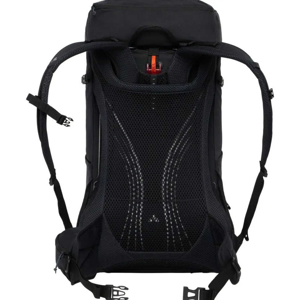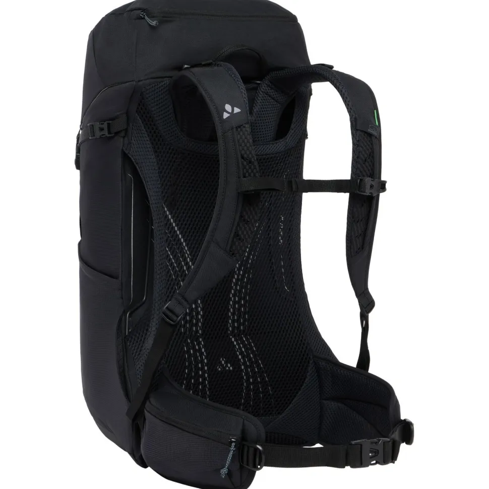 Der Brenta 33 von Vaude ist ein sportlicher und top ausgestatteter Wanderrucksack mit ausgezeichneter Rückenbelüftung. Sein Tragesystem ist individuell anpassbar und besonders für längere Rücken geeignet. Die ErgoShape-Schultergurte verschaffen optimale Bewegungsfreiheit, während die gepolsterten Hüftflügel mit ihrem praktischen Reißverschluss-Täschchen für Entlastung sorgen.