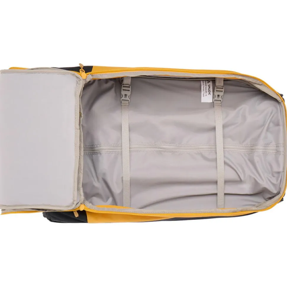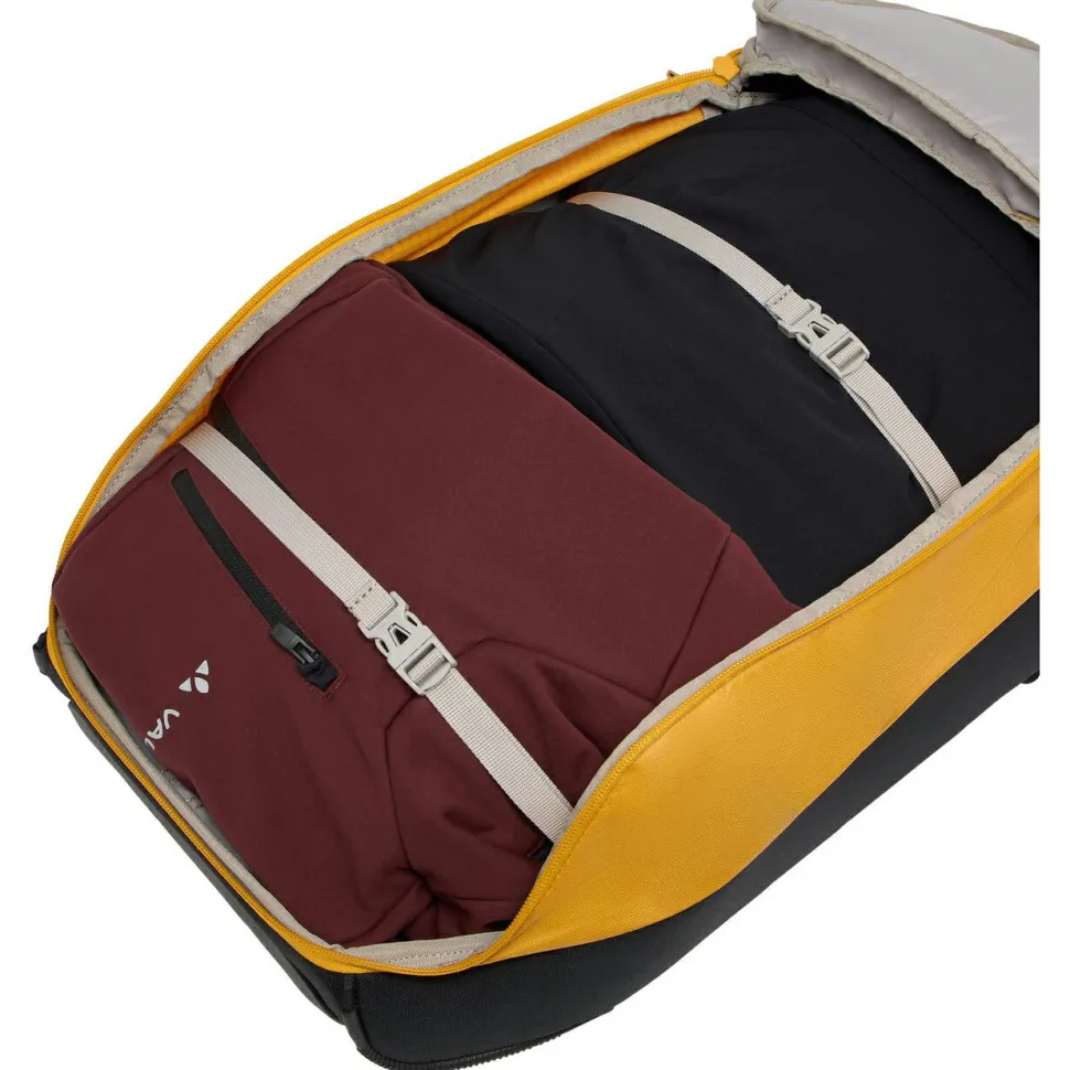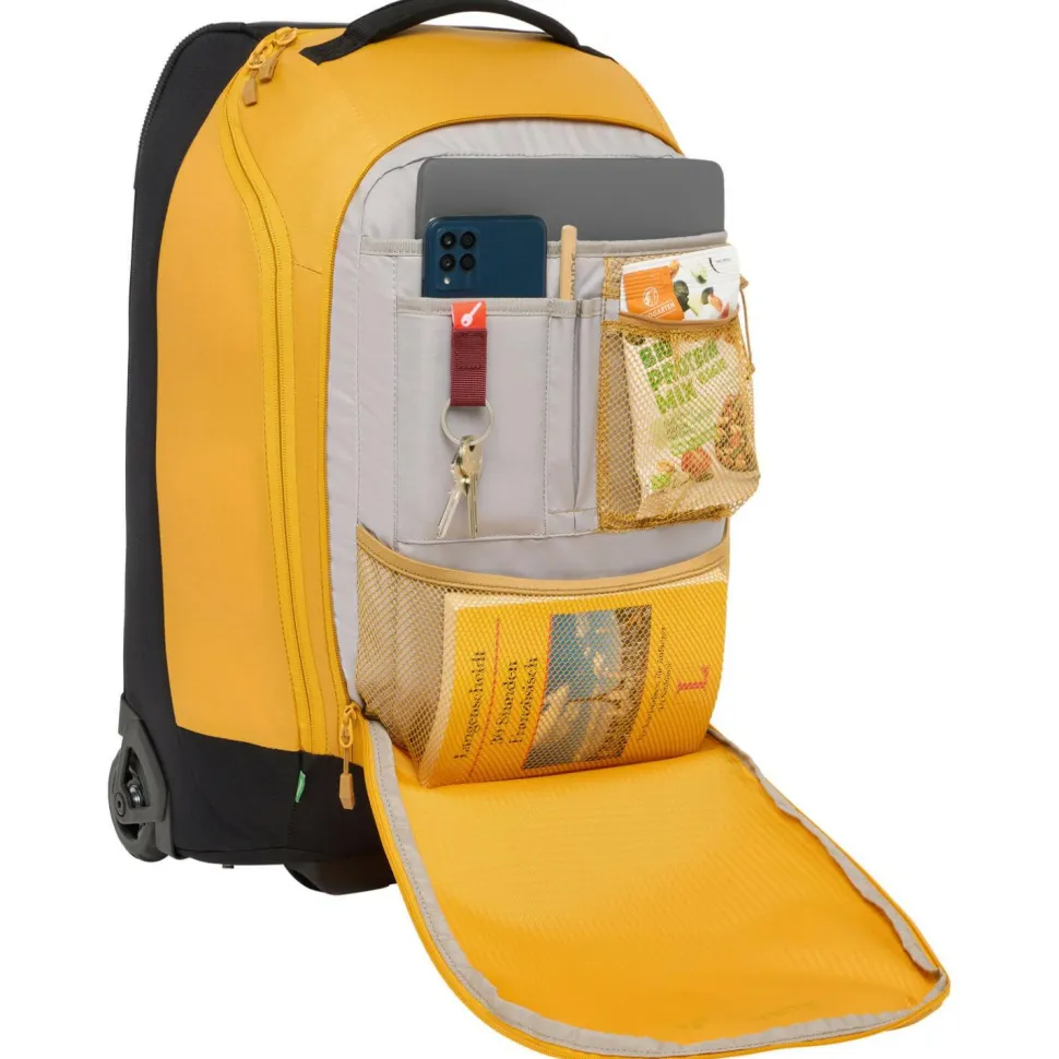 Ob Urlaubsreise oder Geschäftsreise – die Citytravel Carry-On 25 Reisetasche von Vaude begeistert Reisende durch maximale Flexibilität und praktisches Format in Handgepäckgröße. Der kompakte Trolley verfügt über leichtgängige Rollen und kann mit einem ausziehbaren Griff bequem gezogen werden. Alternativ stehen ein gepolsterter Tragegriff und verstaubare Schulterträger für den Transport auf Reisen bereit. Vaude hat die Citytravel Carry-On 25 Reisetasche mit einem 13,3“ großen Laptopfach und einem gepolsterten Smartphonefach ausgestattet. Ein Schlüsselhalter und interne Kompressionsriemen ergänzen den wasserabweisenden Trolley.