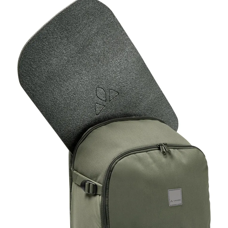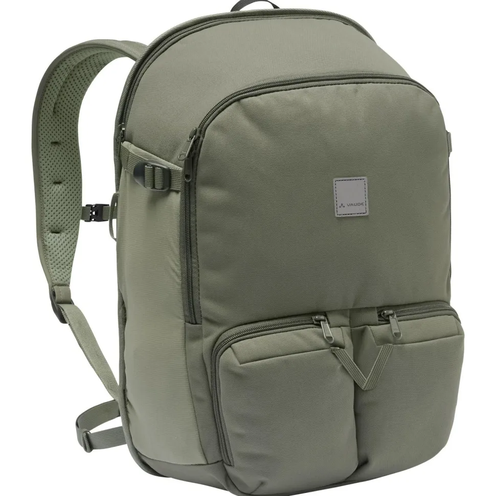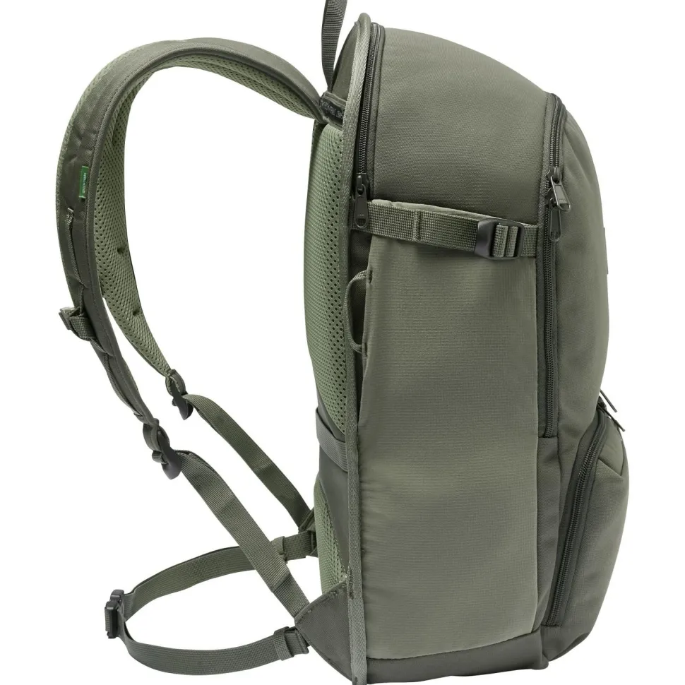 Der Coreway Backpack 23 Rucksack von Vaude ist die perfekte Wahl für den täglichen Einsatz. Mit 23 Liter Volumen, drei extra Fronttaschen und einem 15,6“ großen Notebookfach lassen sich alle wichtigen Accessoires im Alltag bestens transportieren. Am Rücken ist der Rucksack bequem gepolstert und auch die Schulterträger sind sehr komfortabel. Ergänzt wird das Tragesystem vom Brustgurt, Hüftgurt und zusätzlichem Tragegriff. Der Tagesrucksack verfügt über einen Blinklichthalter und einen Schlüsselclip. Mit PU-Beschichtung und Eco Finish Oberflächenbehandlung ist er gut vor Nässe und Schmutz geschützt.