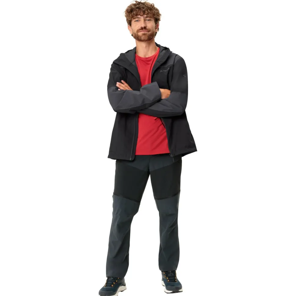 Perfekt für Wanderungen bei Wind und Wetter eignet sich die Elope Jacket II Regenjacke von Vaude. Die doppellagige Outdoorjacke ist mit ihrer PU-Membran zuverlässig wasserdicht und windundurchlässig. Gleichzeitig lässt sich Wasserdampf von innen nach außen entweichen und verfügt über eine wasserabweisende DWR-Behandlung an der Oberfläche. Dank hohem Kragen und verstellbarer Kapuze sind in der Hardshelljacke auch Kopf- und Halsbereich bestens geschützt.