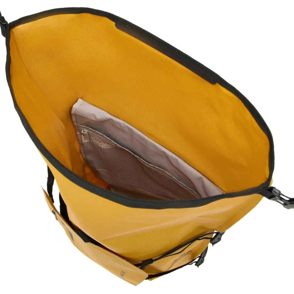 Die Free Cargo Gepäckträgertasche von Vaude ist eine wasserdichte Tasche für Einkäufe und Exkursionen mit dem Fahrrad. Die multifunktionale Rolltop-Tasche ist aus überwiegend recyceltem, PVC-freiem Material hergestellt und steckt eine Zuladung bis zu 12,5 Kilo problemlos weg. Ihre verlässliche Wasserdichtigkeit resultiert aus hochfrequenzverschweißten Materialverbindungen. Sie verfügt über einen vielseitigen äußeren Befestigungsflap und lässt sich zudem mit dem leicht einstellbaren und abschließbaren QMR 2.0 Befestigungssystem an runden Gepäckträgerrohren mit Durchmessern von 8-16 mm fixieren. Und dank ihres äußerst stoß und abriebfest Hard Back 2.0 Kunststoffrückens mit rutschfesten Standfüssen ist die Free Cargo Gepäckträgertasche sehr zuverlässig und langlebig unterwegs!