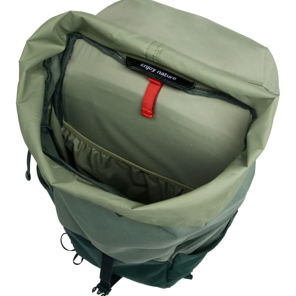 Zu den praktischen Details des Jura 24 gehören unter anderem ein Reißverschlussfach im Deckel, zwei Stretch-Seitentaschen und eine Halterung für die Trekkingstöcke. Die integrierte Regenhülle befindet sich in einem separaten Fach und ist abnehmbar. Damit ist der Jura 24 ein sehr agiler und flexibler Begleiter für Wandertouren und andere Kurzzeitabenteuer!