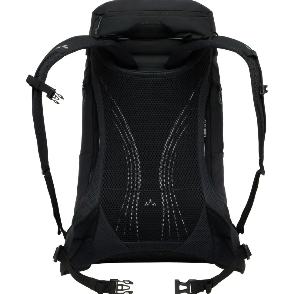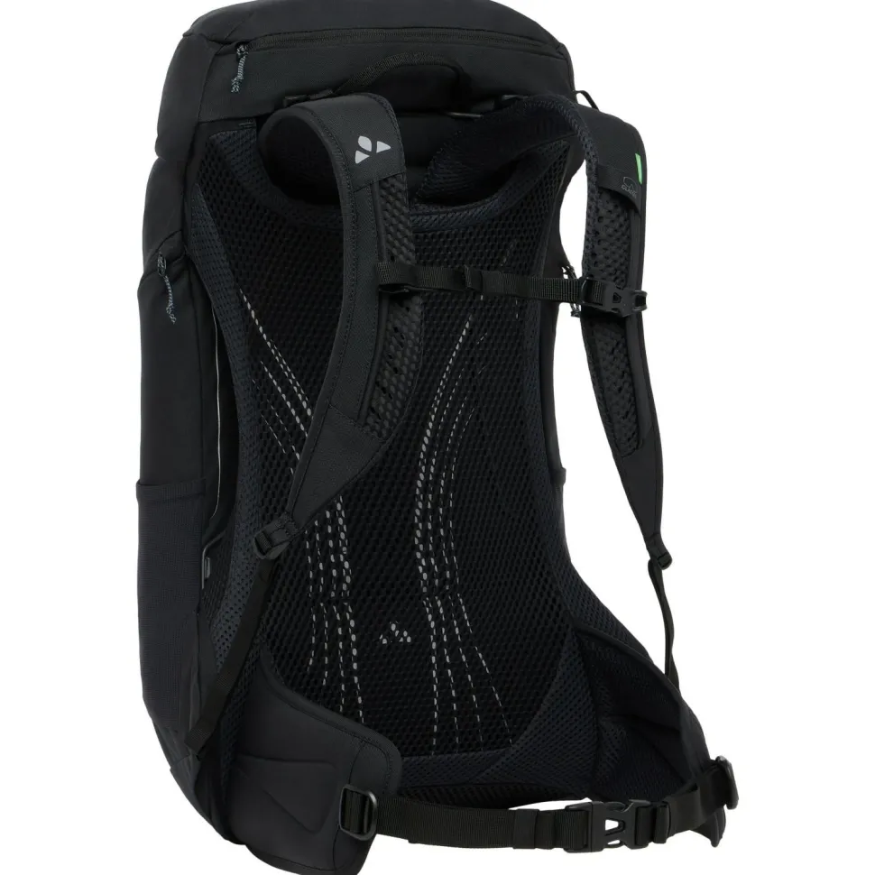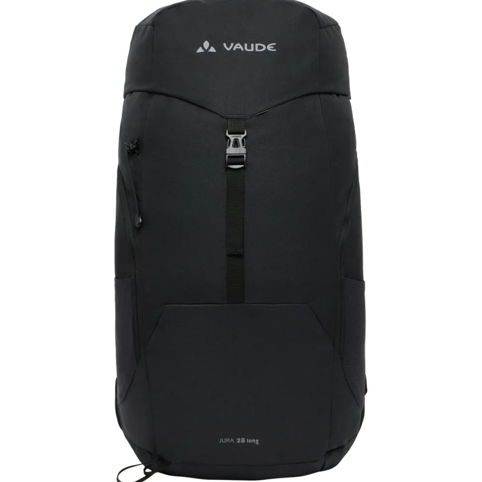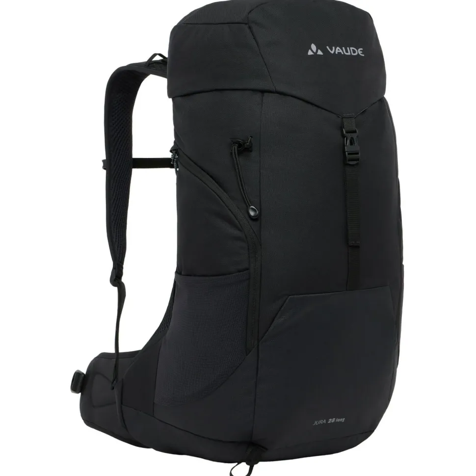 Der Jura 28 von Vaude ist ein kompakter und gut ausgestatteter Wanderrucksack mit einem langen Rücken. Sein von einem leichten Hüftgurt unterstütztes Aeroflex 3D 2.0 Tragesystem belüftet den Rücken permanent von allen vier Seiten und ist sowohl gegen Wärmestau als auch gegen Feuchtigkeitsbildung sehr wirksam. Die ergonomisch geformten Schultergurte tragen dazu die optimale Bewegungsfreiheit und noch mehr Komfort bei. Der zwischen ihnen liegende Brustgurt ist mit einem Trinkschlauchhalter versehen.