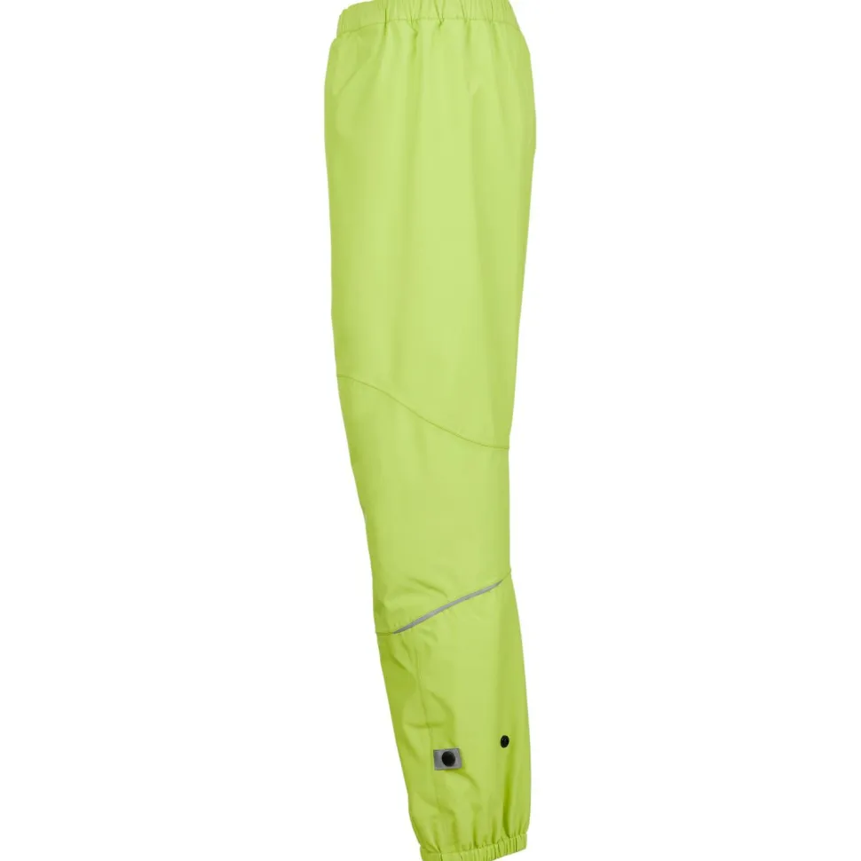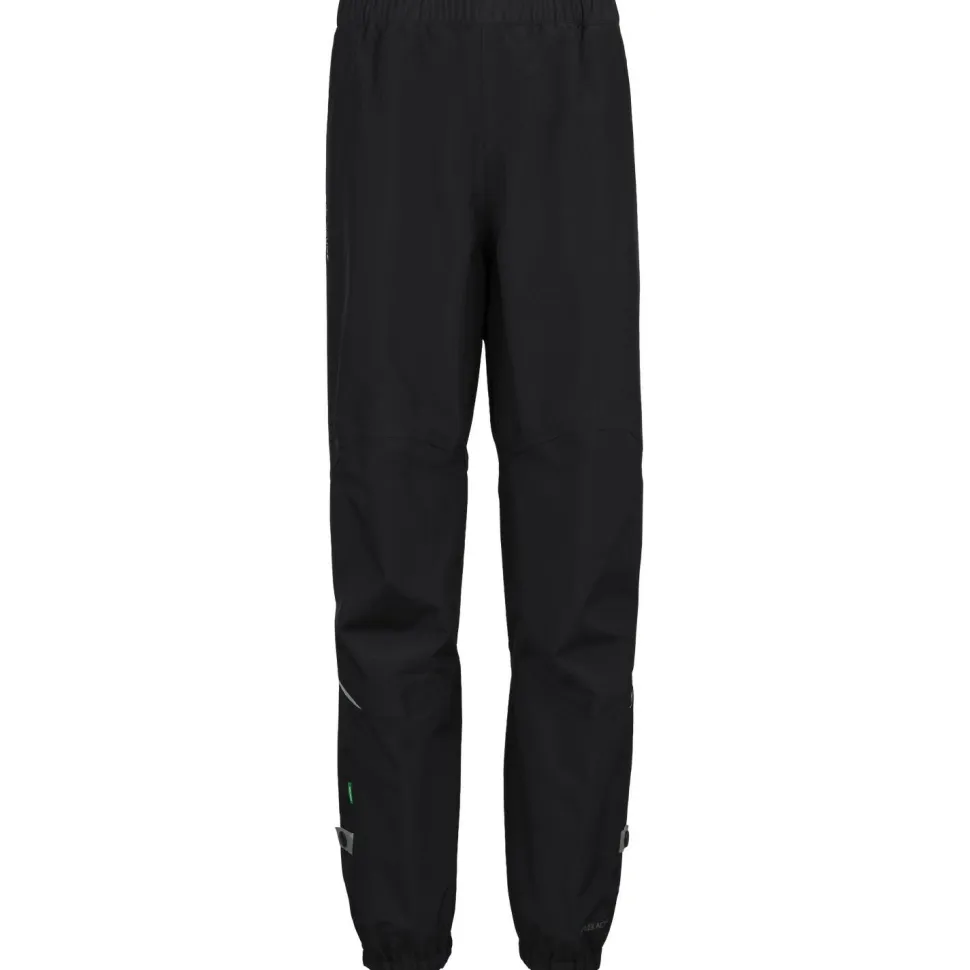 An den Beinen ist die Kinderhose weitenregulierbar und gleichzeitig elastisch. Die Knie sind ergonomisch vorgeformt und reflektierende Details ergänzen die funktionelle Regenhose für Kinder. Für zusätzlichen Schutz vor Nässe und Schmutz behandelt Vaude die Oberfläche mit wasserabweisendem Eco Finish.