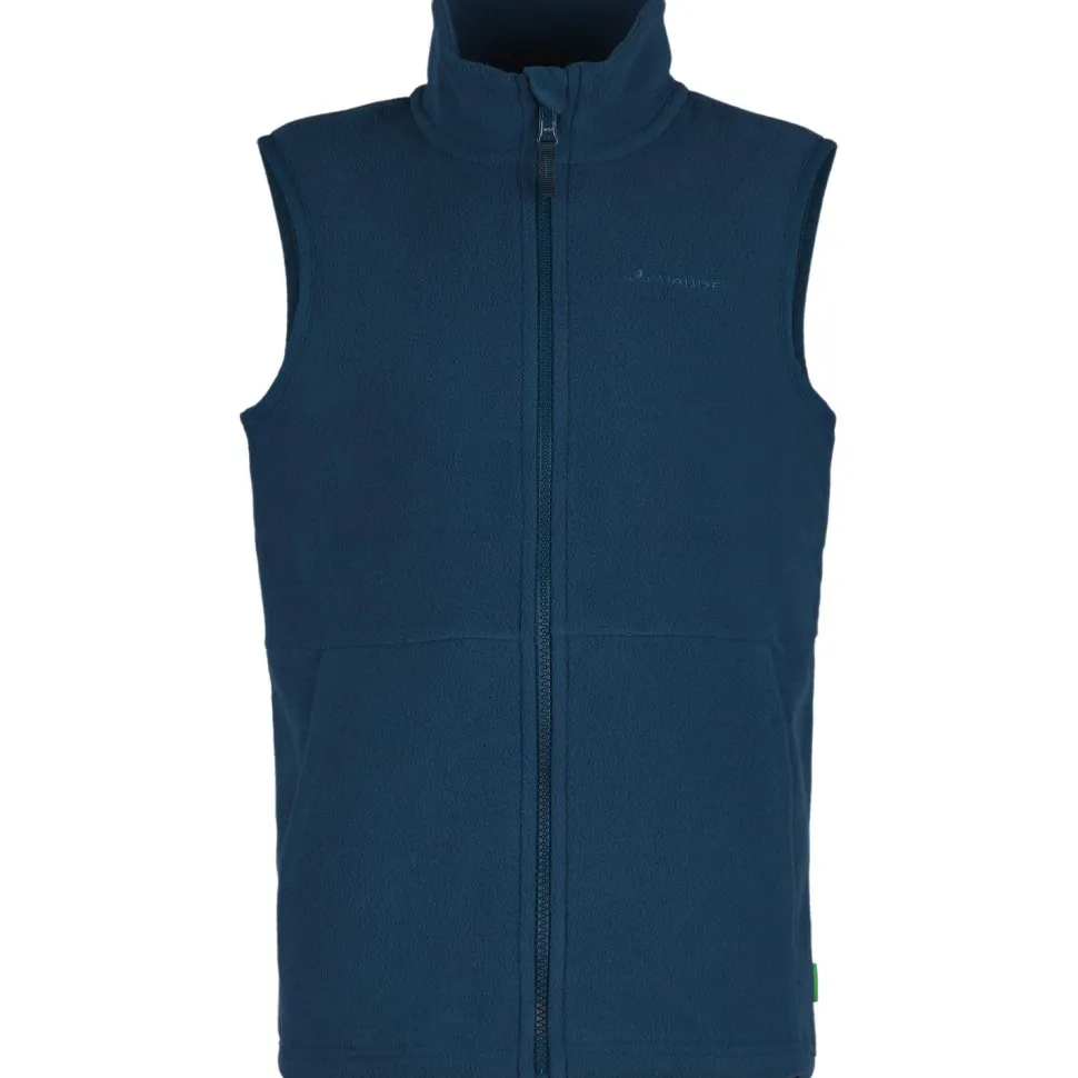 Vielseitig einsetzbar ist die Fleeceweste Kid’s Pulex Vest II von Vaude! Das Fleecematerial ist angenehm weich und bietet einen soliden Wärmekomfort. Zudem hast Du eine gute Bewegungsfreiheit. Elastische Bündchen optimieren die Passform. Bei Bedarf kannst Du die Fleeceweste in eine Regenjacke einzippen. Ein Allrounder für Freizeit und Wandertouren!
