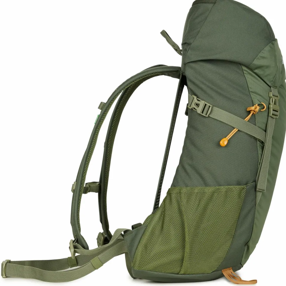 Dank des geräumigen Hauptfachs mit großer Öffnung lässt sich der Toploader einfach und übersichtlich von oben befüllen. Proviant, zusätzliche Kleidung und andere Ausrüstungsgegenstände finden problemlos Platz und sind ohne langes Suchen schnell wieder hervorgeholt. Das ebenfalls geräumige Deckelfach bietet Dir zusätzlich Platz für wichtige Kleinigkeiten, die Du schnell zur Hand haben möchtest. Mit Hilfe der Kompressionsriemen sorgst Du mit wenigen Handgriffen für eine stabile und kompakte Form. Befestigungen für Trekkingstöcke sind ebenfalls vorhanden.