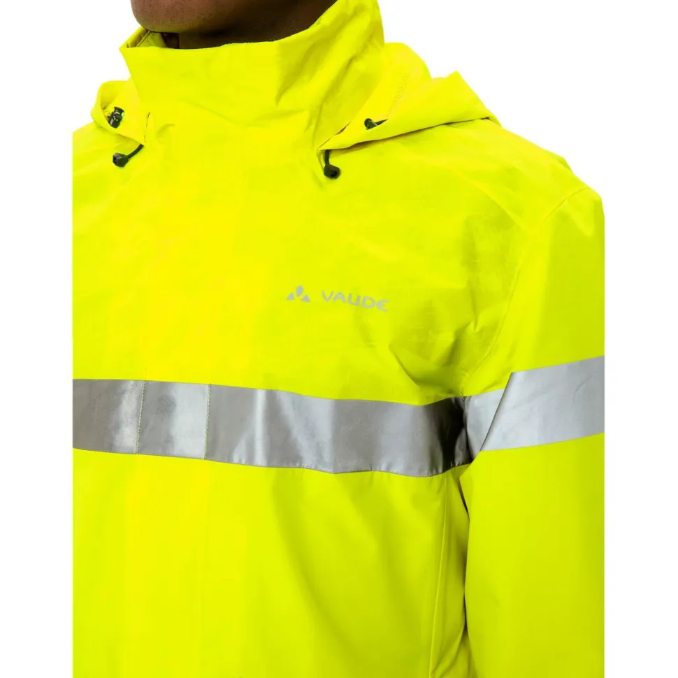 Die Luminum Rain Jacket von Vaude ist eine robuste und wetterfeste Fahrradjacke mit besonderem Augenmerk auf hohe Sichtbarkeit. Ihr 2-Lagen Laminat garantiert eine sehr gute Sichtbarkeit bei Tag und Nacht durch seine helle Farbe, die umlaufenden reflektierenden Streifen und das partiell reflektierende Material. Zudem ist das größtenteils recycelte Gewebe wasserdicht, winddicht und atmungsaktiv. Neben seiner hervorragenden Funktionalität bietet es dank des geteilten Futters mit einem oberen Teil aus Mesh und einem unteren Teil aus Tafetta auch einen hohen Tragekomfort.