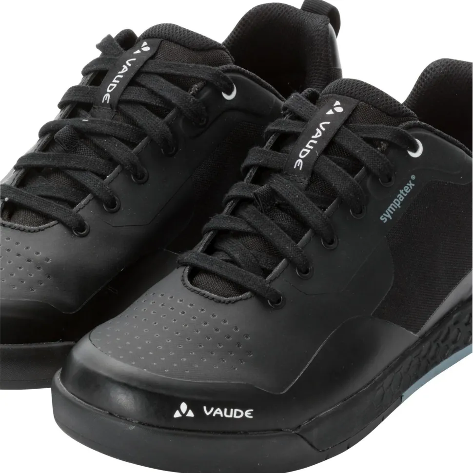 Vaude rüstet die Moab Sympatex Radschuhe mit einer integrierten Sympatex Membran aus, die die Schuhe besonders wasserdicht und wetterfest macht. Dabei sorgt ein atmungsaktives und feuchtigkeitsregulierendes Innenfutter und robuste TPU-Verstärkungen für zusätzlichen Tragekomfort. Die wasserdichten MTB-Schuhe sind mit einer Vaude AM Flat Sohle für Flat-Pedals ausgestattet und verfügen über eine SUPtraction Flat Gummimischung mit flexiblem V-Flow Stabilitätsindex 3. Außerdem dämpfen eine EVA Zwischensohle und eine anatomisch geformte Einlegesohle in den wetterfesten Moab STX Schuhen. Mit praktischer Schnürung, moderat gepolsterter Zunge und Anziehschlaufen im Fersenbereich komplettiert Vaude die funktionellen Radschuhe für Touren und Trails bei Regen, Matsch und Nässe.