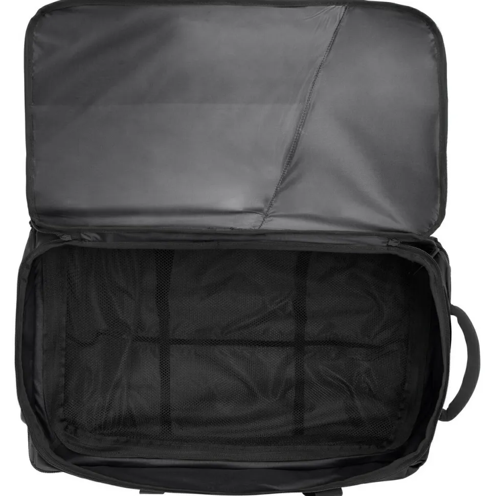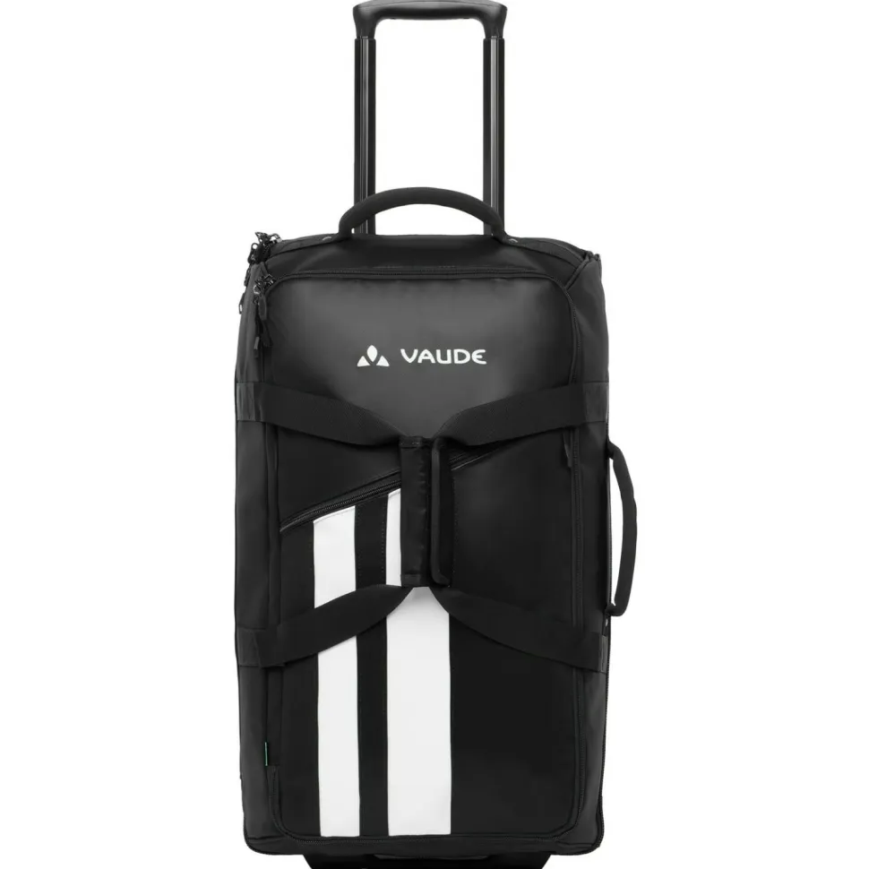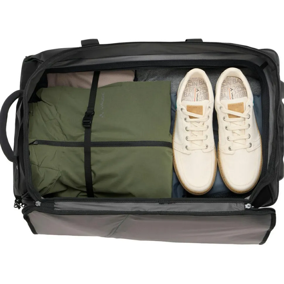Die bringt richtig viel Gepäck unter und gibt sich vielseitig im Transport: ob Urlaubsreise oder Wochenendtrip, die Rotuma 65 kommt mit!Die Reisetasche aus robustem und dank PFC-freier ECO Finish DWR wasserabweisendem Obermaterial kommt mit einem in der Mitte aufklappbaren Hauptfach mit 65 Litern Stauraum und Zwischenboden. Ein zusätzliches Zip-Fach für Kleinigkeiten ist an der Vorderseite verarbeitet. Das leichtgängige, austauschbare Rollensystem und der ausziehbare Teleskopgriff erlauben einen unkomplizierten Transport als Trolley-Koffer. Per Schultergurt und Tragegriff kann die Rotuma 65 aber auch als große Reisetasche verwendet werden.