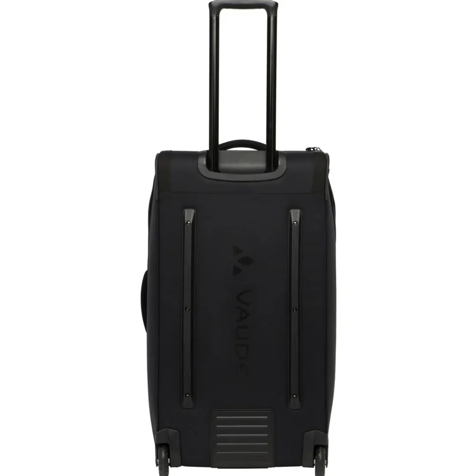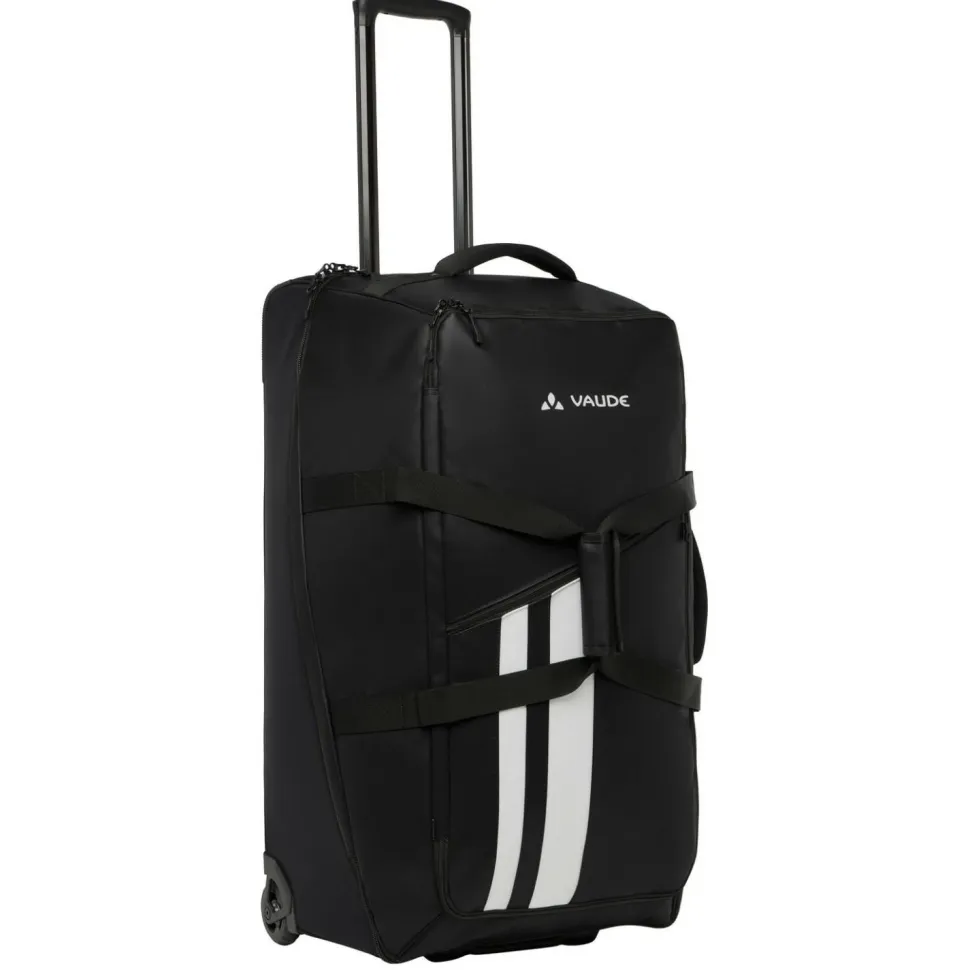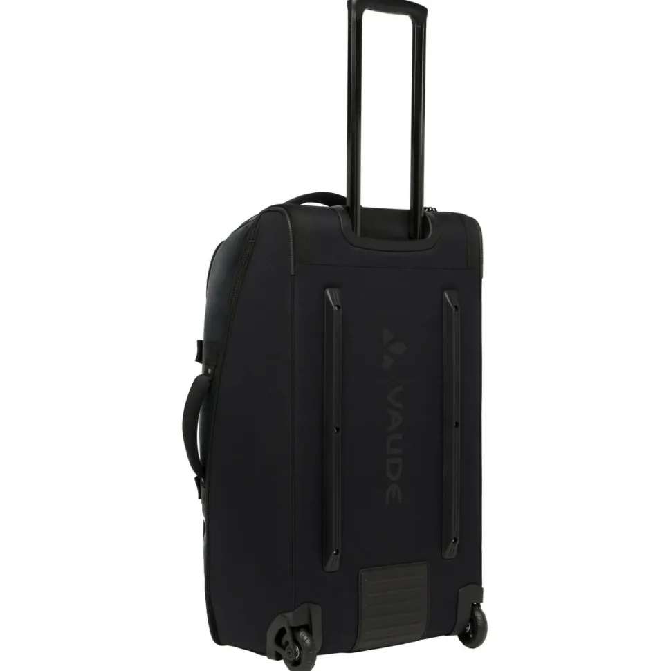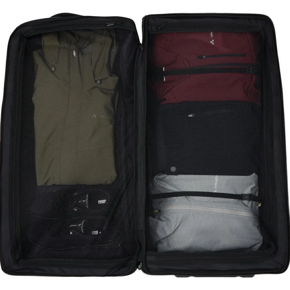 Für digitale Nomaden und Weltenbummler ein Muss – der Rotuma 90 von VauDe!Der geräumige Rollkoffer lässt sich in der Mitte aufklappen und hat dadurch viel übersichtlichen Stauraum für Deine Sachen. Das robuste, wetterfeste Material trotzt auch verregneten Tagen und der Kantenschutz sorgt für noch mehr Robustheit. Der Trolley hat mehrere praktische Tragegriffe und den obligatorischen, ausziehbaren Griff mit dem sich dein Gepäck dank der leichtgängigen Rollen problemlos über unebenes Gelände ziehen lässt. Das Reissverschlussfach auf der Vorderseite verstaut kleinere Dinge die schnell parat sein sollen. Durch die seitlichen Tragegriffe kann der Koffer wie eine große Sporttasche getragen werden. Rein ins Reiseabenteuer mit dem Rotuma 90 von VauDe!
