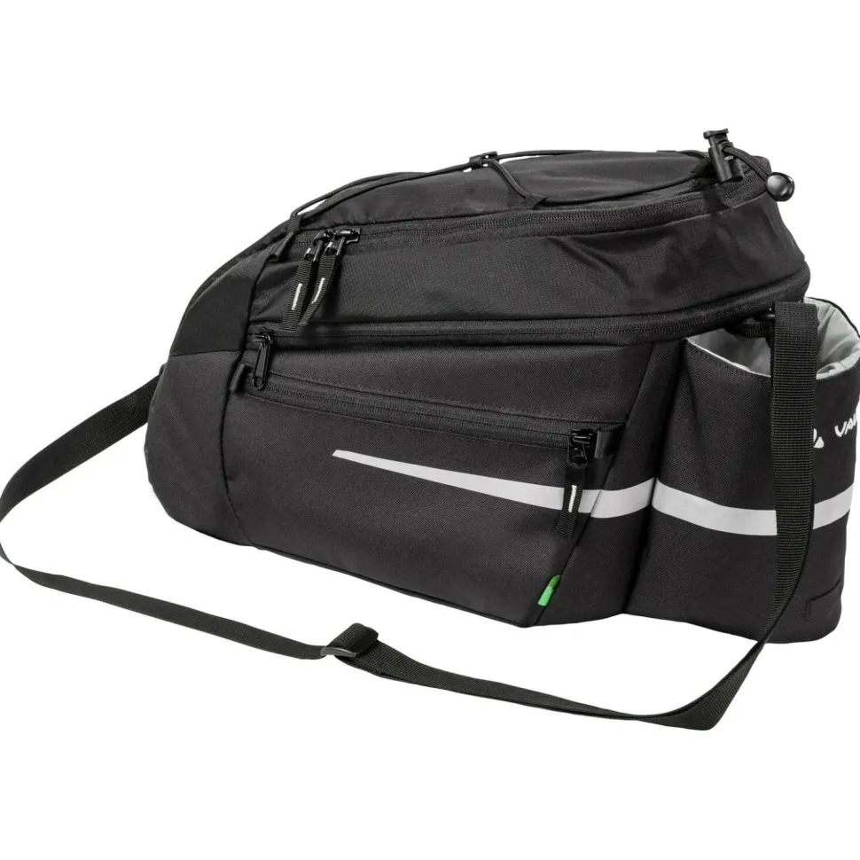 Die Silkroad L (MIK) Gepäckträgertasche von Vaude ist eine kompakte und robuste Gepäcktransporterin fürs Fahrrad. Ihr robuster und wetterfester Gewebemix ist umweltfreundlich aus überwiegend recycelten Materialien hergestellt. Sie verfügt über einen abnehmbaren Schultergurt, eine clevere Fächeraufteilung inklusive Flaschenhalter und Gepäckspinne sowie eine praktische Volumenerweiterung. Mit ihrem MIK Befestigungssystem ist sie vielseitig einsetzbar, da der Adapter ein schnelles und einfaches befestigen und abnehmen ermöglicht. Kleine aber feine Extras wie die Regenhülle, der Rücklichthalter und die reflektierenden Elemente runden diese vielseitige Bike-Tasche perfekt ab!