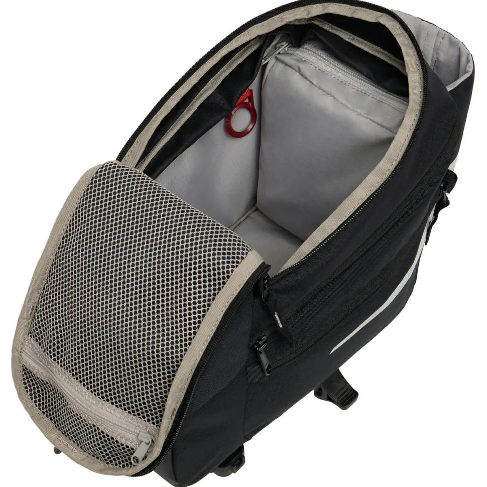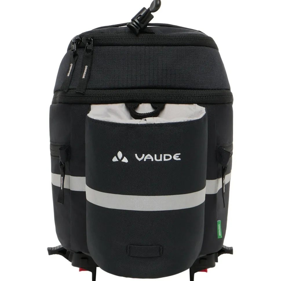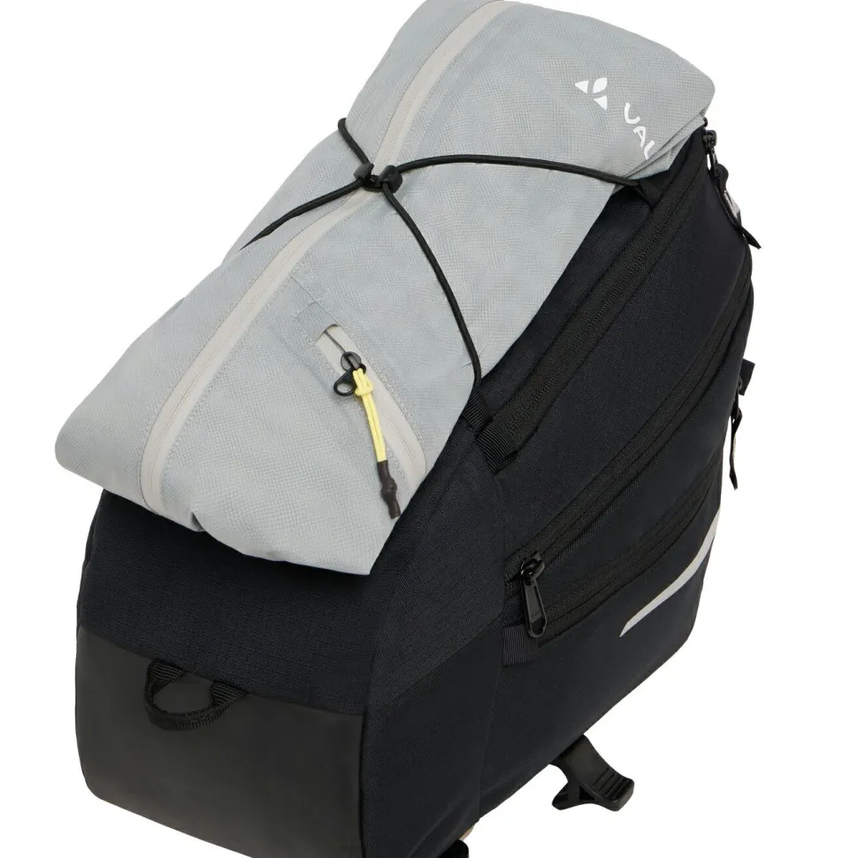 Die Silkroad L (UniKlip 2.0) Gepäckträgertasche von Vaude ist eine kompakte und robuste Gepäcktransporterin fürs Fahrrad. Ihr robuster und wetterfester Gewebemix ist umweltfreundlich aus überwiegend recycelten Materialien hergestellt. Sie verfügt über einen abnehmbaren Schultergurt, eine clevere Fächeraufteilung inklusive Flaschenhalter und Gepäckspinne sowie eine praktische Volumenerweiterung.
