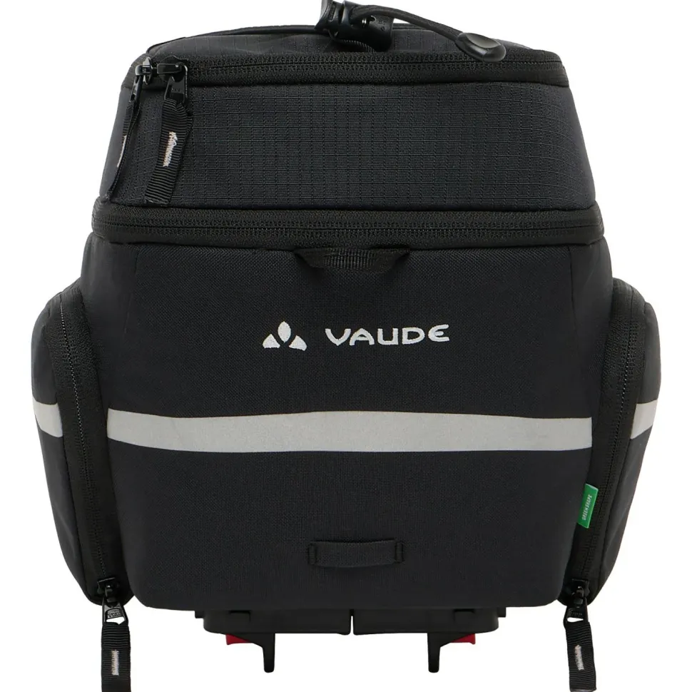 Die Silkroad Plus (UniKlip 2.0) Gepäckträgertasche von Vaude ist eine geräumige und robuste Gepäcktransporterin fürs Fahrrad. Sie verfügt über eine Regenhülle, eine clevere Fächeraufteilung und eine praktische Volumenerweiterung. Mit ihrem UniKlip 2.0 Befestigungssystem ist sie vielseitig einsetzbar, da sie ohne zusätzliche Adapter auf verschiedenen Gepäckträgern verwendet werden kann. Das System passt sich automatisch an Gepäckträger mit einem Durchmesser von 10 bis 16 mm an und ist anpassbar für Trägerbreiten von 9 bis 16 cm. Ein integrierter Diebstahlschutz ist vorhanden, die maximale Belastung beträgt 10 Kilogramm.