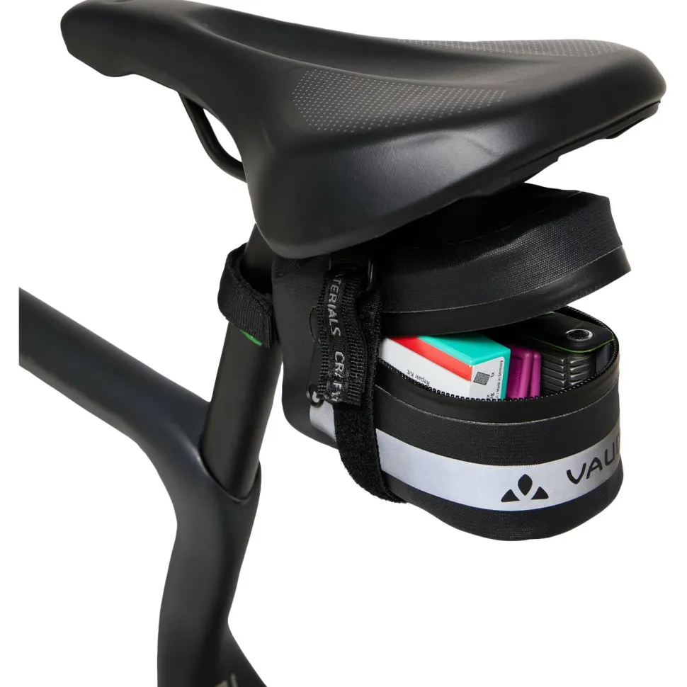 Einfach mit Klettverschluss lässt sich die Fahrradtasche Tool Proof M von Vaude am Rad befestigen!