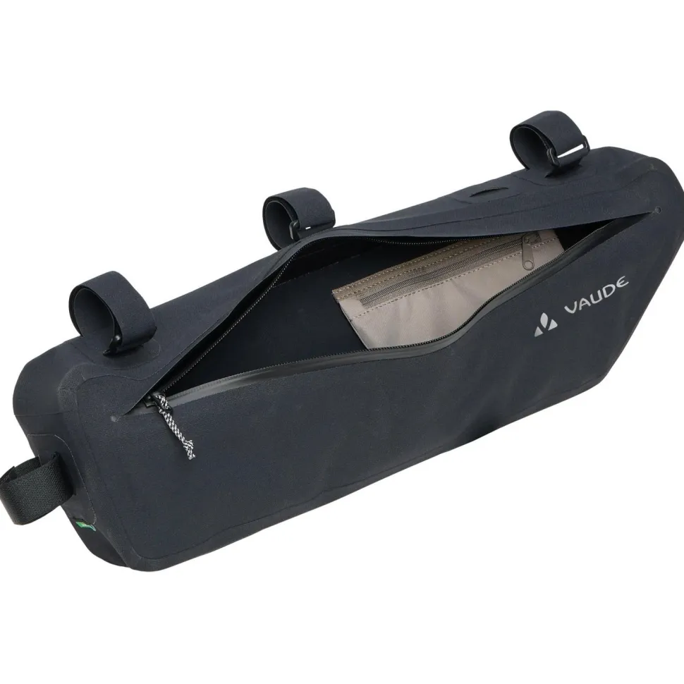 Die Trailframe L Fahrradtasche von Vaude kannst Du einfach und schnell mit Klettverschlüssen am Rahmen Deines Fahrrads befestigen. Sie eignet sich für Rahmenumfänge von 9 bis 17 cm. Dank ihres wasserdichten Materials und der wasserdichten Reißverschlüsse bleiben Deine Habseligkeiten auch bei strömendem Regen sicher und trocken.