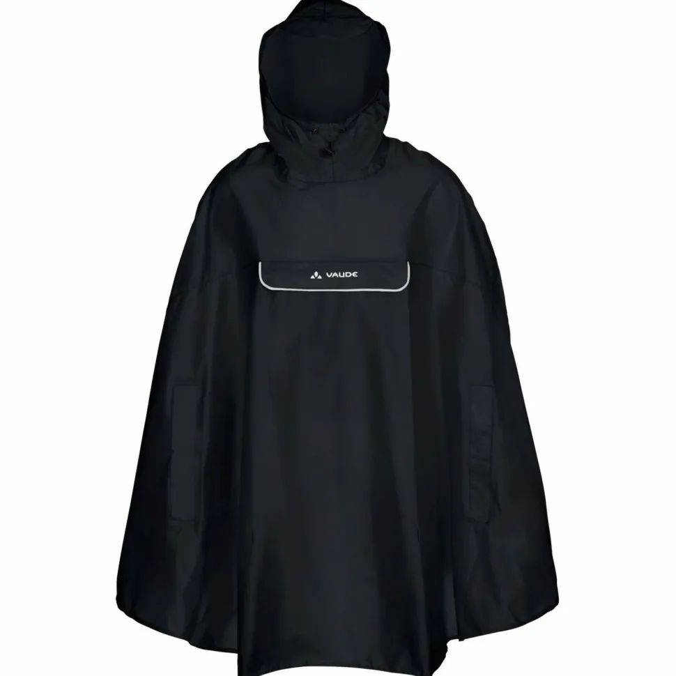 Für Allwetterradler – der Valdipino von Vaude. Der Regenponcho ist genau das Richtige für alle, die sich auch von Regenwetter nicht vom täglichen Radfahren abhalten lassen. Mit dem wasserdichten Poncho lassen sich die Arbeitsstelle trocken erreichen und Regenschauer auf Trekkingtouren ohne Wasserschaden überstehen. Der große Vorteil an einem Regenponcho ist, dass auch der Rucksack oder die Umhängetasche darunter Platz finden und damit vor Nässe geschützt sind. Der Valdipino von Vaude ist aus leichtem Polyamid gefertigt und mit einer wasserabweisenden Polyurethanschicht überzogen. Seine angeschnittene Kapuze mit Schirm lässt sich über einen Kordelzug eng ums Gesicht herum zuziehen. Über Handschlaufen lassen sich die Ponchoenden bei windigem Wetter festhalten. Zwei seitliche Schlitze dienen zur Belüftung bei warmen Temperaturen. In der Fronttasche lassen sich Kleinigkeiten verstauen und der reflektierende Aufdruck verbessert die Sichtbarkeit im Straßenverkehr. Praktischer Regenschutz für Alltag und Freizeit – der Valdipino von Vaude.