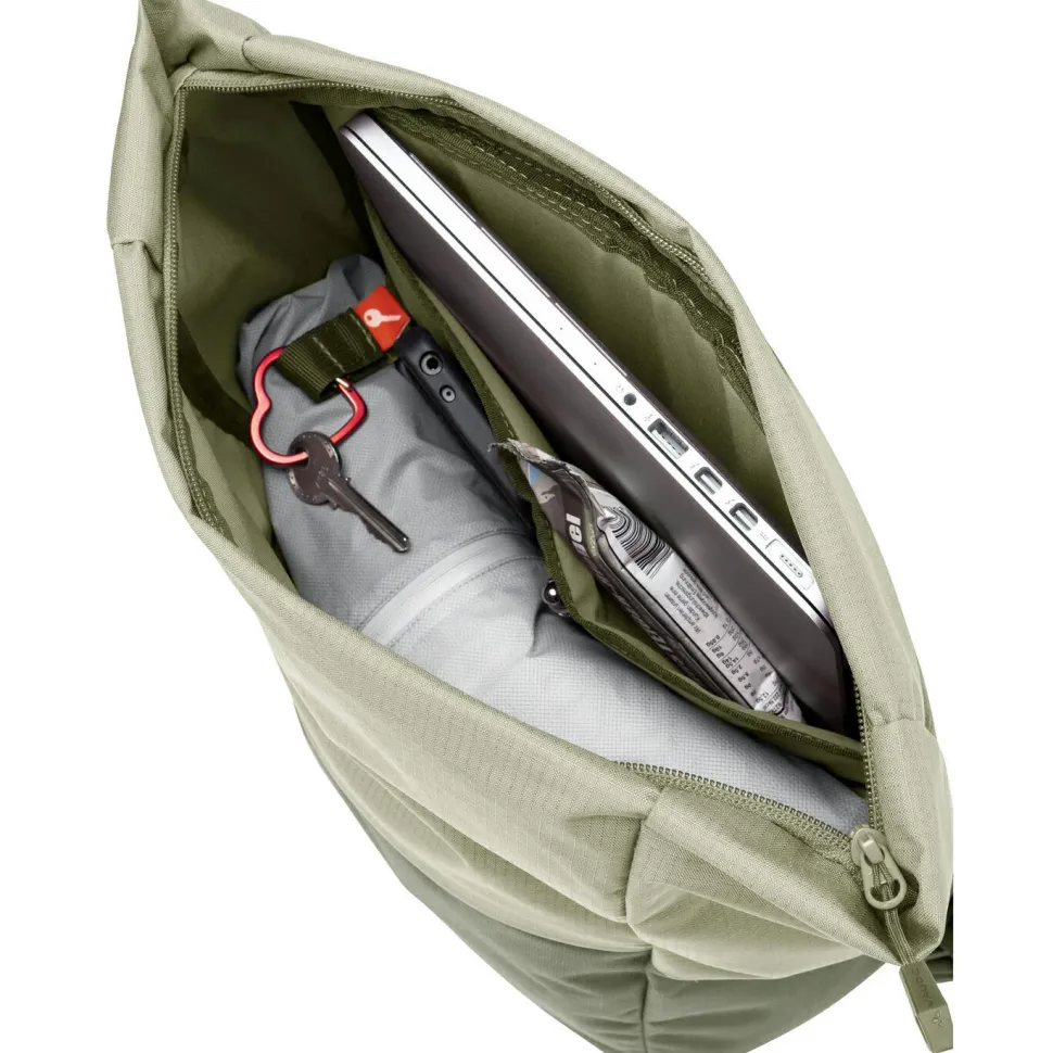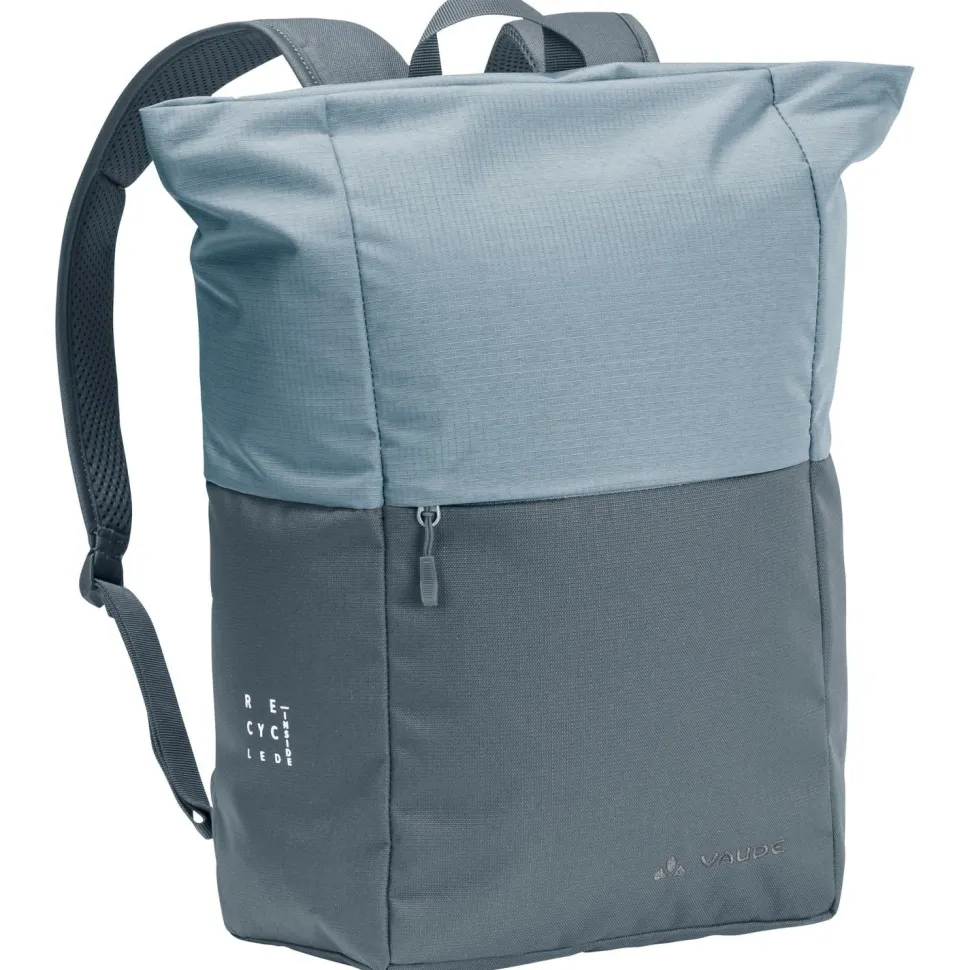 Der Wala Daypack von Vaude ist der perfekte Allrounder für den täglichen urbanen Einsatz. Er verfügt über 15 Liter Stauraum und ist mit gepolsterten Schulterträgern und zusätzlichem Tragegriff ausgestattet. In einem flachen Innenfach bietet der Rucksack Platz für ein Tablet oder kleines flaches Notebook. Für wichtige Accessoires steht ein extra Frontfach mit Reißverschluss bereit. Außerdem gehören zum Wala Rucksack ein Schlüsselhalter und natürlich das farblich abgestimmte Colorblock Design. Vaude fertigt den Rucksack praktisch komplett aus recyceltem Polyester.
