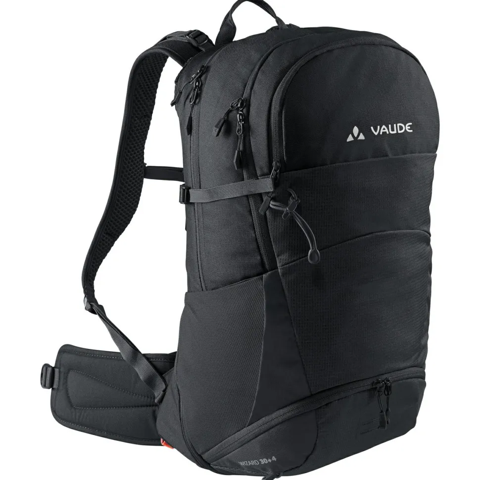Der Wizard 30+4 ähnelt vom Design einem großen Trekking- oder Reiserucksack und kommt mit einem praktischen Bodenfach, das über eine zusätzliche Bodenfachtrennung verfügt. So können Teile der Ausrüstung gesondert aufbewahrt und transportiert werden. Bei Bedarf lässt sich die Bodenfachtrennung auch entfernen, sodass das Hauptfach auch bequem über den vorderen Reißverschluss erreichbar ist. Der Vaude Wanderrucksack ist für die Aufnahme von Trinksystemen vorbereitet und verfügt über seitliche Kompressionsriemen, Stockhalterung und Regenhülle.