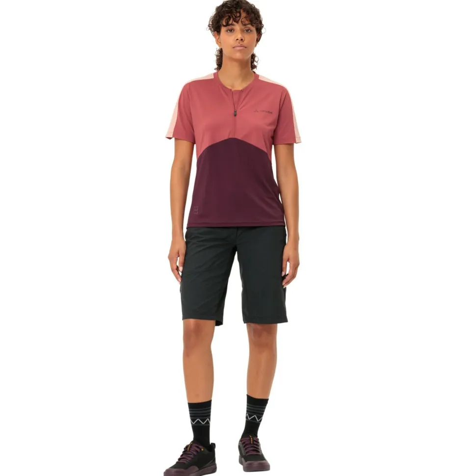 Das Women’s Altissimo Shirt II von Vaude trocknet schnell, ist angenehm atmungsaktiv und sorgt für hervorragende Bewegungsfreiheit beim Mountainbiken. Vaude stattet das Radtrikot im Colorblock Design mit kurzem Stehkragen und Frontreißverschluss in halber Länge aus.