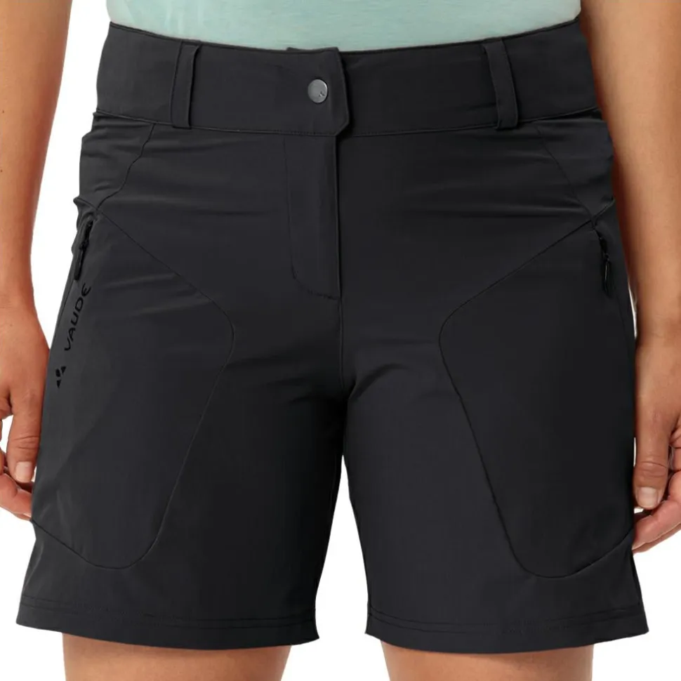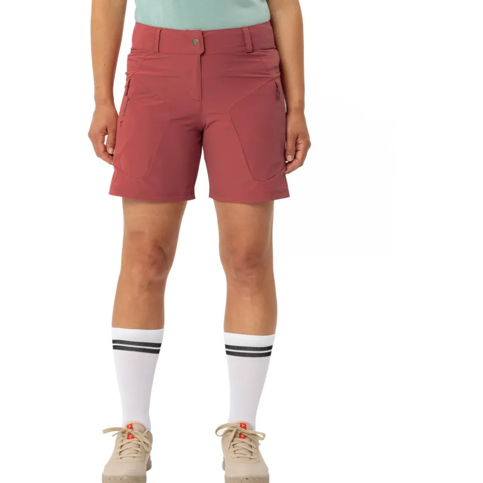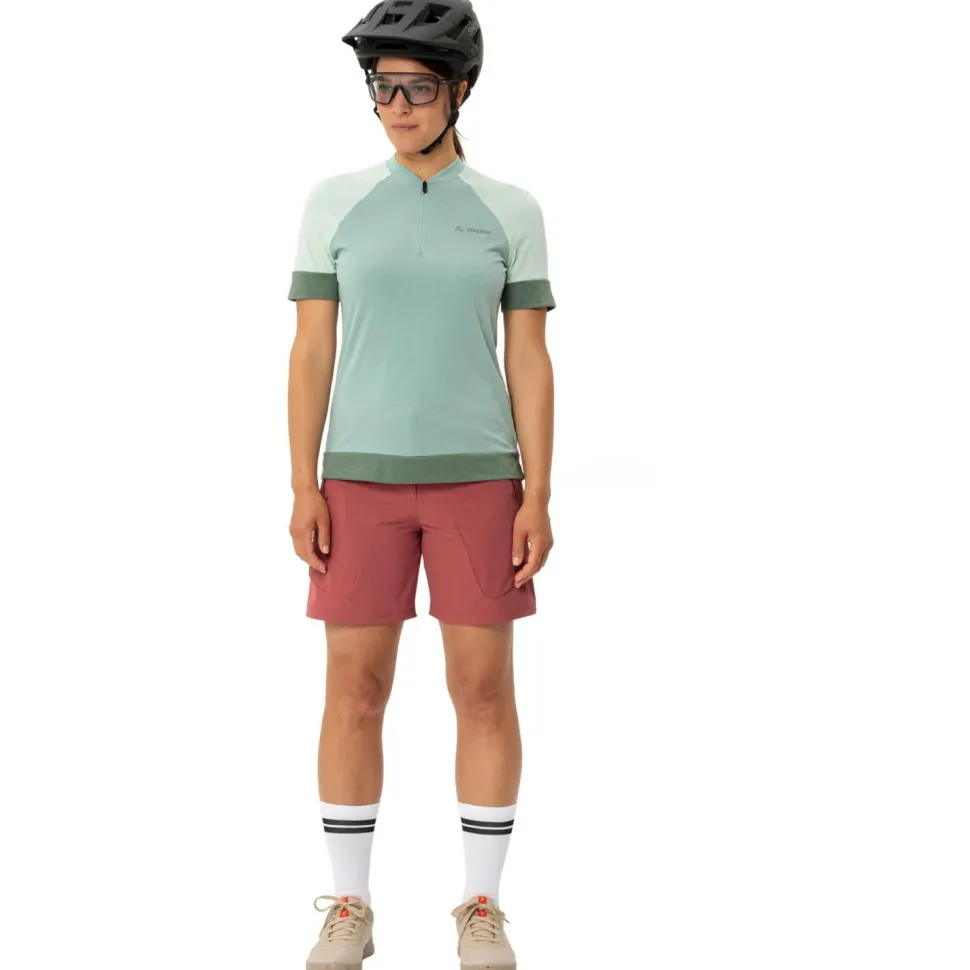 Vielseitig sportlich und ausdauernd im Sattel, und zwar mit Komfort: die Women’s Altissimo Shorty von Vaude! Die kurze, elastische Fahrrad Shorts für Damen ist atmungsaktiv, trocknet schnell und wartet mit einer angenehm zu tragenden Innenhose auf. Während die Außenhose überwiegend aus recyceltem Polyamid besteht, verbindet die Innenhose ihr recyceltes Polyester mit einem stretchigen Elasthan-Anteil. Dieser Mix sorgt in Verbindung mit dem integrierten Sitzpolster für eine besondere Ausgewogenheit aus sportlicher Funktion und entspanntem Komfort.