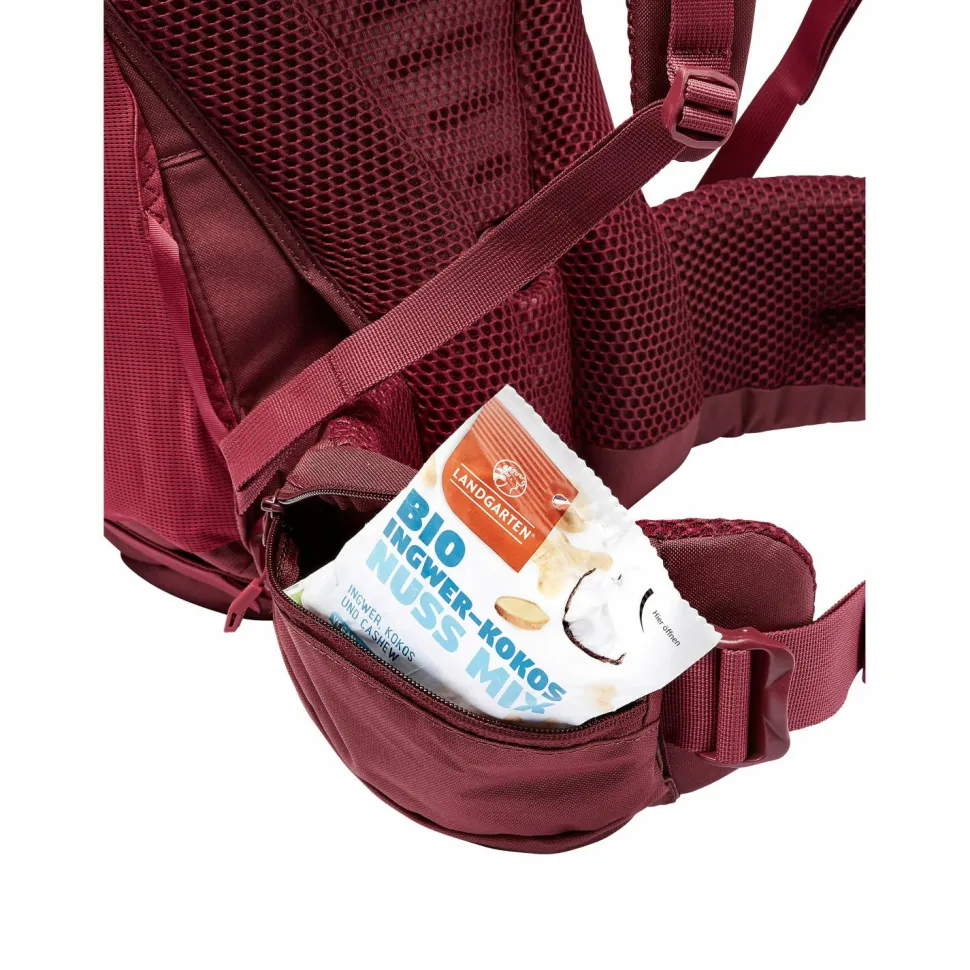 Das Material punktet mit Langlebigkeit und Nässeschutz. Viel Stauraum bietet das geräumige Hauptfach, auf das Du zweifachen Zugriff hast. Das Deckelfach lässt sich verstellen und bietet Stauraum für Kleinigkeiten. Die Trekkingstöcke kannst Du sicher am Rucksack befestigen. Praktisch ist das Infopanel für alpine Notfälle. Kompressionsgurte verhindern Instabilität. Besonders komfortabel ist der individuell einstellbare Rücken. Dank Comfort Space wird der untere Rückenbereich optimal entlastet. Die Schultergurte sind an die Anatomie kleinerer Personen angepasst. Der Hüftgurt übernimmt zuverlässig die Last. Ein zuverlässiger Partner für Trekkingtouren!