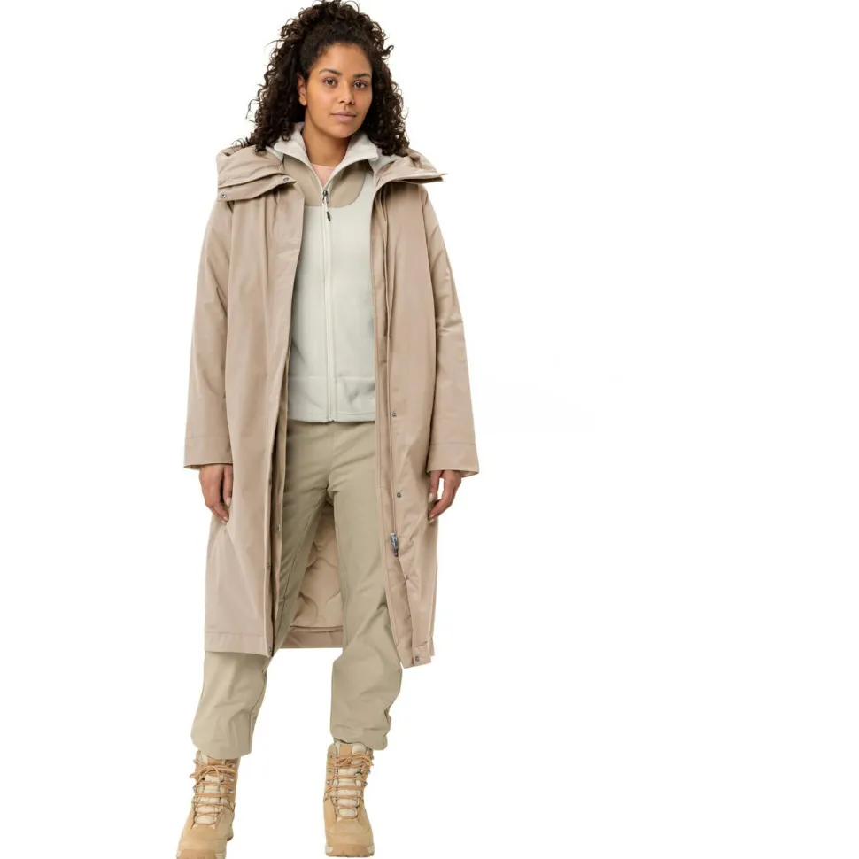 An regnerischen Tagen liefert der Mantel Women’s Coreway Coat von Vaude sicheren Wetterschutz! Dank Membran ist die Jacke zuverlässig wind- und wasserdicht. Zudem punktet der Parka mit einer hohen Atmungsaktivität. Dank Primaloft Füllung bleibst Du zuverlässig auf Temperatur. Praktisch für Kleinigkeiten kannst Du in den beiden Taschen verstauen. Verstellbare Bündchen optimieren die Passform. Mit dem längeren Schnitt sind empfindliche Zonen optimal bedeckt. Ein klassischer Allrounder für Alltag und Freizeit, der Coreway Coat!