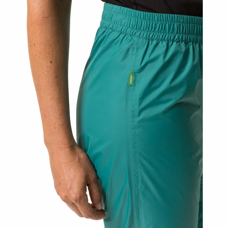 Ob unterwegs mit dem Tourenrad oder auf dem Weg ins Büro – die Vaude Women’s Drop Pant bietet zuverlässigen Regenschutz wenn Handhabung und Packmaß zählen. Die Regenhose für Alltags-Bikerinnen überzeugt mit sinnvollen Details und guter Ausstattung. Ihr 2,5-Lagen Ceplex Active Material ist zuverlässig wasser- und winddicht und zudem hoch atmungsaktiv. Der sportliche Schnitt mit vorgeformten Knien und in der Weite regulierbaren Beinabschlüsse sorgen für perfekten Sitz ohne einzuschränken. Reflektierende Elemente an Vorder- und Rückenteil machen bei schlechten Lichtverhältnissen auf die Trägerin aufmerksam. Wird sie nicht benötigt, ist sie im mitgelieferten Packbeutel aufgehoben. So kann beim plötzlichen Wetterumbruch entspannt und gut geschützt weiter in die Pedale getreten werden. Die Regenhose zum Biken trägt das Vaude Greenshape-Gütesiegel und ist bluesign zertifiziert. Das bedeutet, dass in ihrer Entwicklung und Herstellung besonders hohen Wert auf möglichst umweltverträgliche Materialien und Nachhaltigkeit gelegt wurde. Die sehr leichte Vaude Women’s Drop Pant ist damit immer guten Gewissens im Gepäck!