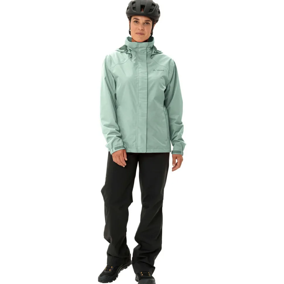 Eine wasserdichte Fahrradjacke mit verstaubarer Kapuze und atmungsaktiver Membran – die Women’s Escape Bike Light Jacket von Vaude! Die Regenjacke besteht aus zweilagige Ceplex Active Material und verfügt über Membran. Die Radjacke ist sehr atmungsaktiv, wind- und wasserdicht. Das Innenfutter ist zweigeteilt und der obere Bereich besteht aus luftigem Mesh-Gewebe, dass Feuchtigkeit schnell abtransportiert. Der untere Teil aus Tafetta und ein Kordelzug im Saum sorgen für einen optimalen Halt am Oberkörper. Die Kapuze schützt vor Wind und Regen und kann schnell in der Jacke verstaut werden. Weitenregulierbare Ärmelbündchen sorgen an den Ärmeln für einen idealen Sitz und verhindern, dass Wind in die Jacke eindringen kann. Reflektierende Elemente und 2 RV Fronttaschen machen die Vaude Women’s Escape Bike Light Jacket zu einer besonders vielseitigen und funktionalen Fahrradjacke für schlechtes Wetter.