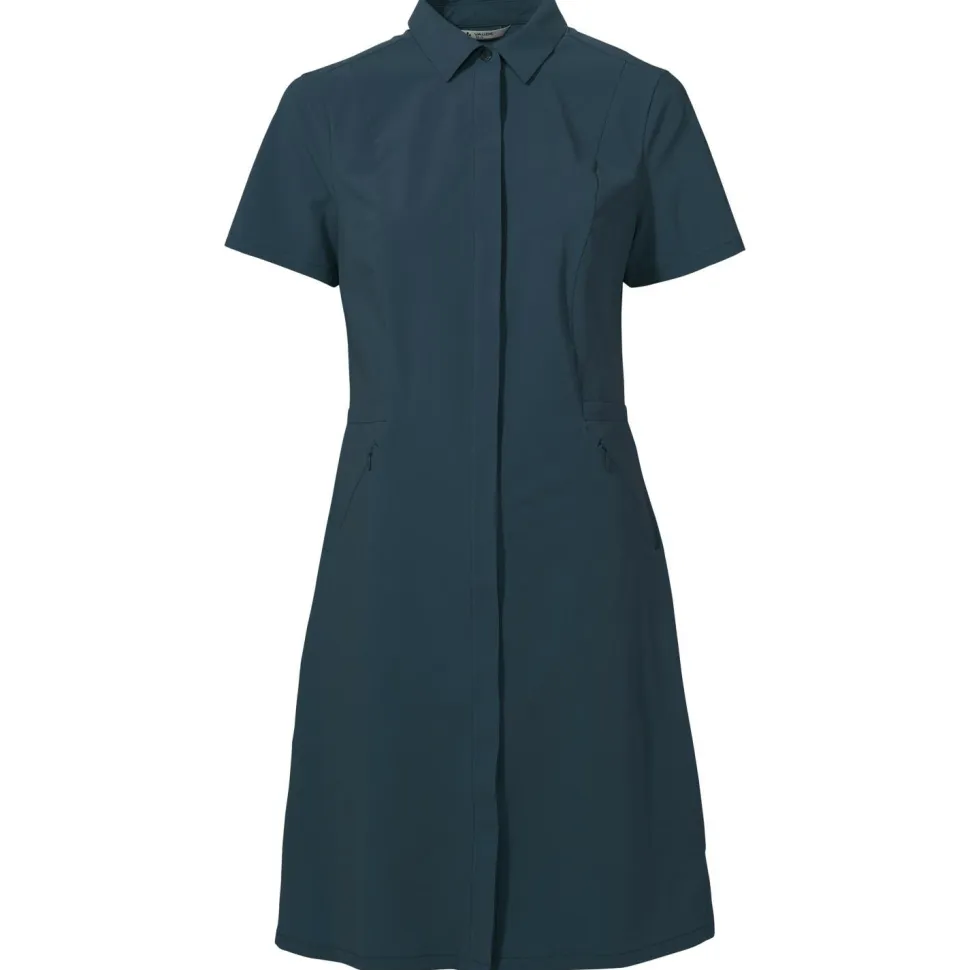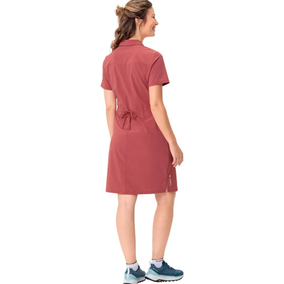 Der feminine Schnitt wird durch einen Kordelzug in der Taille ergänzt, mit dem sich das Vaude Kleid individuell anpassen lässt. Das leichte Outdoorkleid, ist atmungsaktiv, pflegeleicht und trocknet schnell.