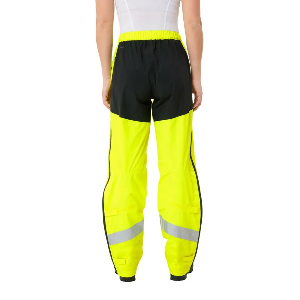 Die Women’s Luminum Rain Pants von Vaude ist eine robuste und wetterfeste Radhose mit besonderem Augenmerk auf hohe Sichtbarkeit. Ihr 2-Lagen Laminat garantiert eine sehr gute Sichtbarkeit bei Tag und Nacht durch seine helle Farbe, die umlaufenden reflektierenden Streifen und das partiell reflektierende Material. Zudem ist das größtenteils recycelte Gewebe wasserdicht, winddicht und atmungsaktiv.