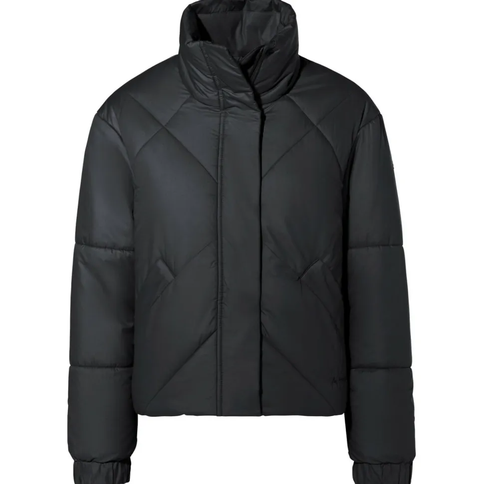 Zuverlässige Wärme und ein stilvoller Auftritt: die Women’s Najun Padded Jacket von Vaude! Die wattierte Kunstfaserjacke ist ideal für den Winter in der Stadt, macht aber auch gelegentliche Ausflüge in die Natur problemlos mit. Ihr Hauptmaterial ist aus recyceltem Polyester hergestellt und mit einer ebenfalls recycelten Primaloft-Wattierung gefüllt. Letztere sorgt für eine sehr starke Wärmeisolierung, die auch bei Feuchtigkeit funktioniert. Das Ganze ist verpackt in einen funktionellen und zugleich stylishen, gecroppten Schnitt mit einem kuschelig warmen, hohen Stehkragen.