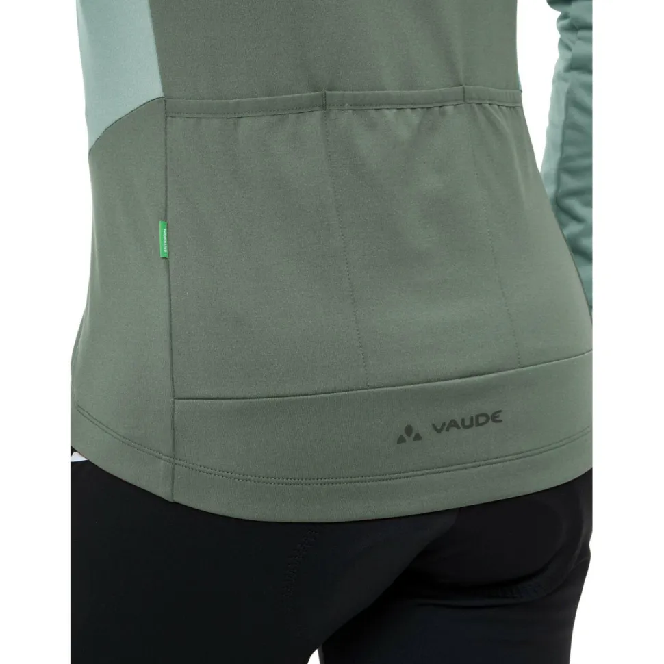 Das Women’s Posta L/S Tricot III von Vaude ist ein warmes Radtrikot für den vielseitigen Einsatz auf dem Bike. Der funktionale Materialmix dieses Langarmtrikots ist elastisch, atmungsaktiv und schnell trocknend, Da das überwiegend aus recyceltem Polyester hergestellte Gewebe innen leicht angerauht ist, bietet es zudem ein gesteigertes Maß an Wärme und Tragekomfort.