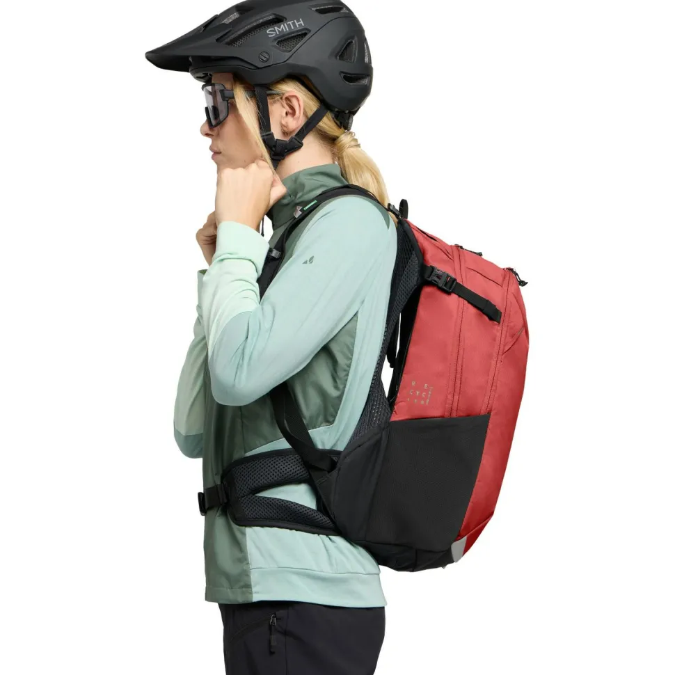 Der Women’s Trailvent 15 von Vaude ist ein kompakter und top ausgestatteter Rucksack fürs Biken und Mountainbiken. Sein robustes und wetterfestes Hauptmaterial aus recyceltem Nylon hergestellt. Für den maximalen Tragekomfort sorgen die anatomisch geformten ErgoShape Schultergurte, der ideal belüftetende Aeroflex 3D Netzrücken, der gepolsterte Hüftgurt mit Tasche und die anpassbare Rückenlänge.