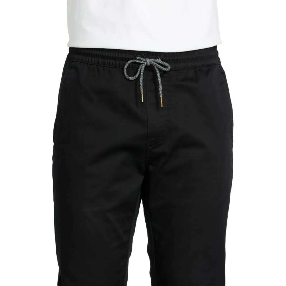 Wenns Dir noch an einer bequemen Freizeithose fehlt, dann bist Du bei der Frickin Slim Jogger von Volcom genau richtig. Diese Hose begleitet Dich bei zahlreichen Freizeitaktivitäten und kann auch beim Faulenzen zuverlässig punkten. Durch den überwiegend geraden Schnitt ist sie dabei sehr angenehm zu tragen und wirkt nicht einengend. Praktisch: Durch einen Kordelzug im Bund kannst Du die Hose bei Bedarf an Deine Proportionen anpassen. Elastische Beinabschlüsse sorgen zusätzlich für einen guten Abschluss der Hosenbeine.