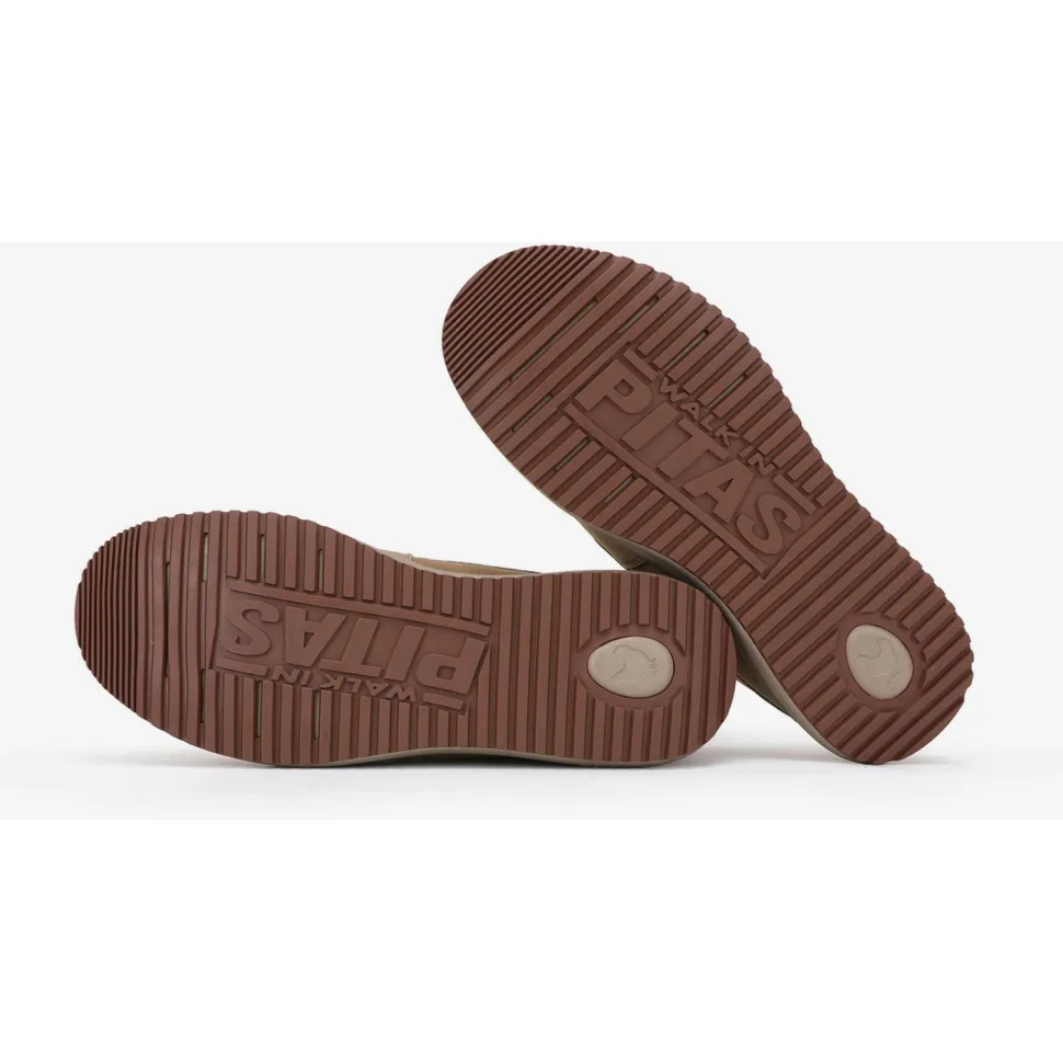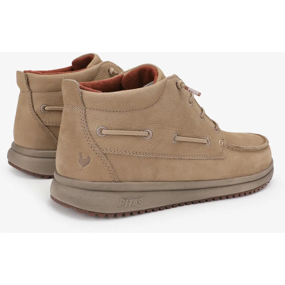 Die Timor Leather Freizeitstiefel von Walk-in-Pitas erinnern ein wenig an Bootsschuhe, geben Dir mit ihrem knöchelhohen Schnitt und der Elastikschnürung aber deutlich mehr Halt und Sicherheit. Dennoch verleihen sie Dir ein elegantes Äußeres.