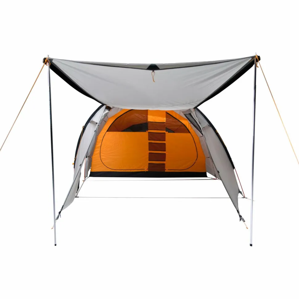 Das Tunnelzelt besitzt zwei gegenüberliegende Eingänge, die einen komfortablen Zugang ermöglichen und zusammen mit den praktischen Apex Ventilationsklappen für eine optimale Frischluftzufuhr sorgen. Der Innenraum bietet mit seiner großzügigen Stehhöhe von 180 cm einen hohen Wohnkomfort und ist in einen Vorraum und zwei unterschiedlich große Schlafkabinen aufgeteilt. Die große Schlafkabine bietet Platz für bis zu vier Personen, während die kleine Schlafkabine zwei Personen beherbergen kann. Die kleine Kabine kann bei Nichtgebrauch außerdem problemlos ausgehängt werden, um einen gemütlichen Sitzplatz für vier Personen zu schaffen. Das Innenzelt aus atmungsaktivem und wasserabweisendem Polyester wirkt der Entstehung von Kondenswasser entgegen und sorgt zusammen mit den Moskitonetzen für angenehme Schlafbedingungen. Der mitgelieferte Packsack spart Platz im Kofferraum und macht das Cirrus von Wechsel zum perfekten Begleiter für den Campingurlaub!