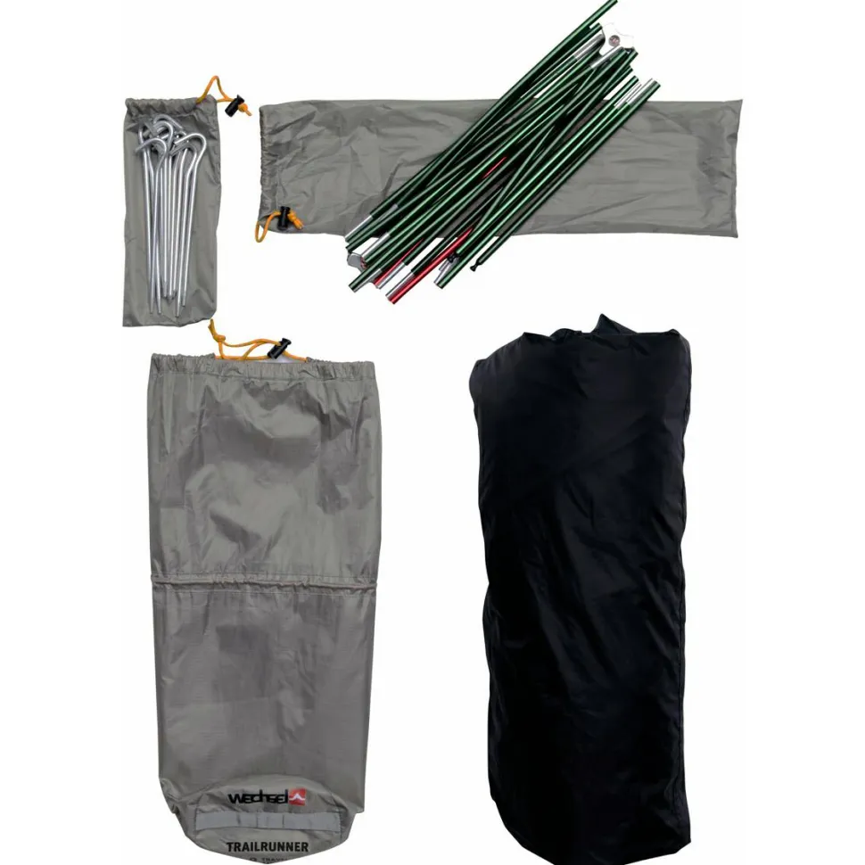 Ganz egal ob Camping, Trekking oder Bikepacking – das Trailrunner von Wechsel ist der ideale Begleiter für Solo-Abenteuer in der Natur! Das Trailrunner ist ein kompaktes Kuppelzelt, das einen gemütlichen Schlafplatz für eine Person bietet und zur Not auch noch den Partner oder die Partnerin beherbergen kann. Das Außenzelt ist aus reißfestem Ripstop-Polyester gefertigt und mit einer wasserabweisenden PU-Beschichtung versehen, die zuverlässigen Schutz vor den Elementen bietet. Der PU-beschichtete Zeltboden aus langlebigem Polyester stellt sicher, dass auch von unten keine Feuchtigkeit eindringen kann. Das Trailrunner verwendet eine windfeste Hybridkonstruktion mit außenliegendem Aluminiumgestänge, die eine großzügige Kopffreiheit und ein hohes Maß an Stabilität bietet. Dazu wird das Zelt schnell und unkompliziert über Clips am farblich markierten Gestänge eingehängt. Das Außen- und Innenzelt sind zudem bereits miteinander verbunden, was den Auf- und Abbau zusätzlich beschleunigt.