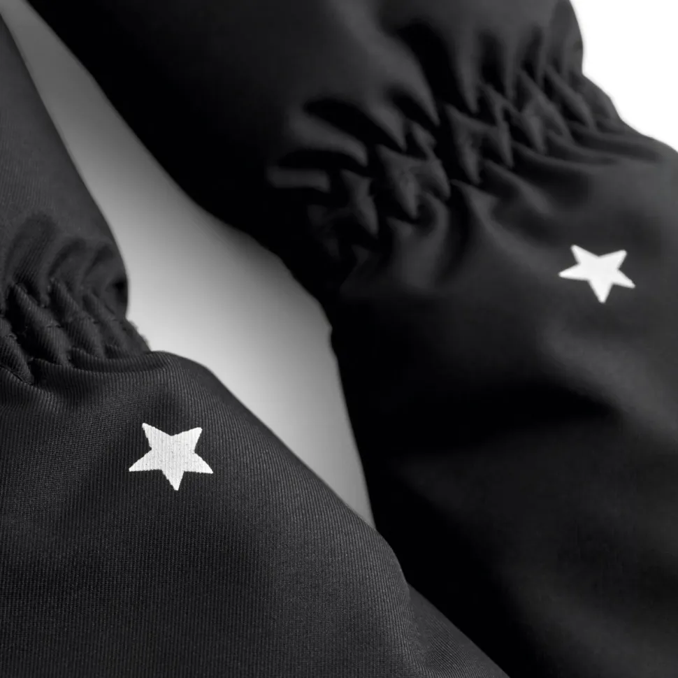 Die Kid’s Univers Black Handschuhe von WeeDo eignen sich für Kinder, die gerne wild im Schnee toben. Sie sind atmungsaktiv, schnelltrocknend, wasser- und winddicht und isolierend. Damit bieten sie kleinen Kinderhänden ausreichend Funktionalität für wilde Schneeballschlachten. Die Hände sind dabei gut geschützt und bleiben angenehm warm und trocken. Die lange überziehbare Manschette wurde mit einem Kordelzug ausgestattet. Damit kann sie individuell angepasst werden. Reflektierende Details sorgen für Sichtbarkeit und Sicherheit bei schlechten Lichtverhältnissen. Das schlichte Design kann vielseitig kombiniert werden.