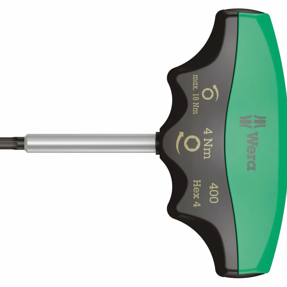 Wera 400 Hex Drehmomentindikator mit festem Drehmoment für Innensechskant Schrauben: die robuste Rutschkupplung garantiert ein deutlich hör- und fühlbares Auslösesignal bei Erreichen des eingestellten Drehmomentes und ein Überziehen des Drehmomentes ist unmöglich. Mehrfach höheres Lösemoment als das eingestellte Anzugsmoment, dadurch wird größtenteils kein weiteres Werkzeug zum Lösen von Schraubverbindungen benötigt. Die Form des Griffs füllt die ganze Hand gut aus und die Finger liegen in den weich gerundeten Griffmulden. Dadurch ist eine optimale, ergonomische Kraftübertragung gewährleistet.