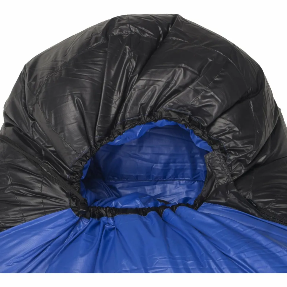 Für diesen optimalen Wärmeschutz ist die hochwertige Daunenfüllung verantwortlich. Diese hält den Körper schön warum und bildet eine hochwertige Wärmeisolation. Gleichzeitig bleibt dieses Material aber auch sehr atmungsaktiv, wodurch ein Überhitzen im Inneren des Schlafsacks verhindert werden kann. Somit schwitzt der Alpinist nicht zu stark, was später auch ein Frösteln verhindert und somit eine Unterkühlung ausschließen kann. Damit die Wärme während des Schlafs nicht aus dem Schlafsack entweichen kann, wurde dieser mit einem speziellen Wärmekragen versehen, der den Körper umgibt.