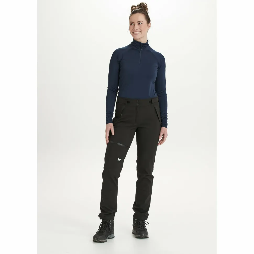Die Women’s Jewel Softshell Pant W-Pro 8000 von Whistler ist ideal für Wanderungen bei niedrigen Temperaturen geeignet. Denn die Innenseite aus Fleece sorgt für eine zusätzliche Isolierung und hält die Beine warm. Damit es im Inneren hierdurch nicht zu einem Hitzestau kommt, besitzt die Wanderhose eine atmungsaktive Membran aus TPU. Diese sorgt mit einer Wassersäule von 8000 Millimetern außerdem für einen umfassenden Schutz vor Nässe und Wind – ideal für Touren in der kalten Jahreszeit.